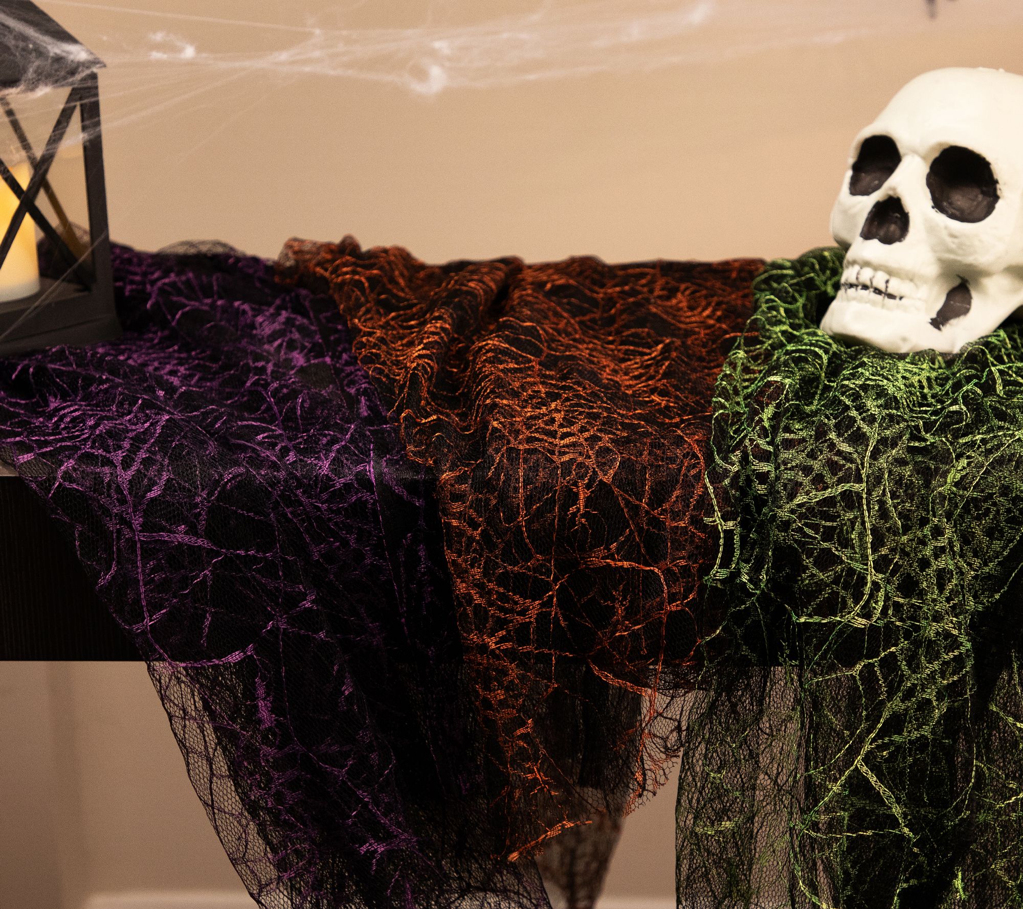 Decorating for Halloween is a spooky delight. Add these spider web fabrics to any wall table or drape along the back of your couch for a fun festive touch. These fabrics are black with purple green or orange web designs. Grab a set of these fabrics today and decorating or craft to your spooky heart's desire. Product Features: Set of 3 spider web Halloween fabric. Fabric is black with a web design in either purple green or orange. Great for crafting or decorating walls furniture or anywhere you desire. Recommended for indoor use. Dimensions: 6 feet long x 32 inches wide. Material(s): polyester;3 Pc of Halloween Fabric.