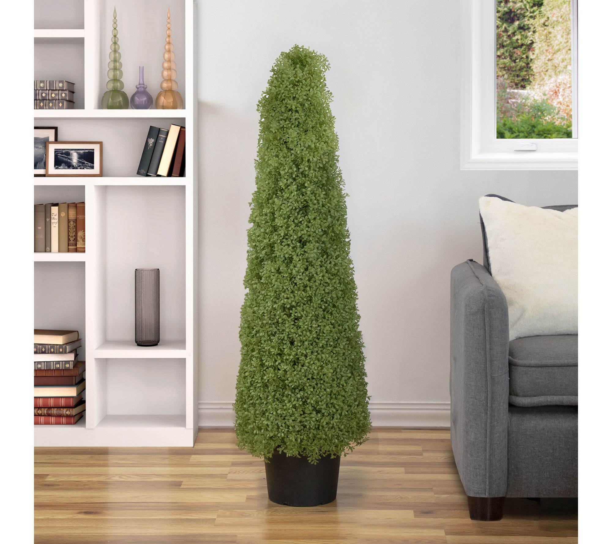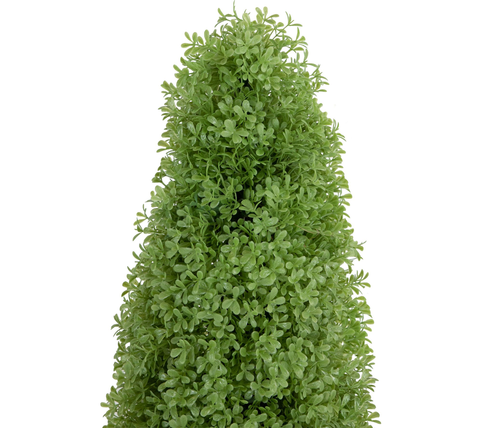 Bring a lively burst of greenery to your space with this faux boxwood cone topiary tree, styled in a sleek round pot for a sophisticated accent. With its lifelike design and zero-maintenance appeal, it's a smart solution for brightening up a patio, entryway, or any corner that needs a touch of fresh charm -- no watering or sunlight required. From Northlight.