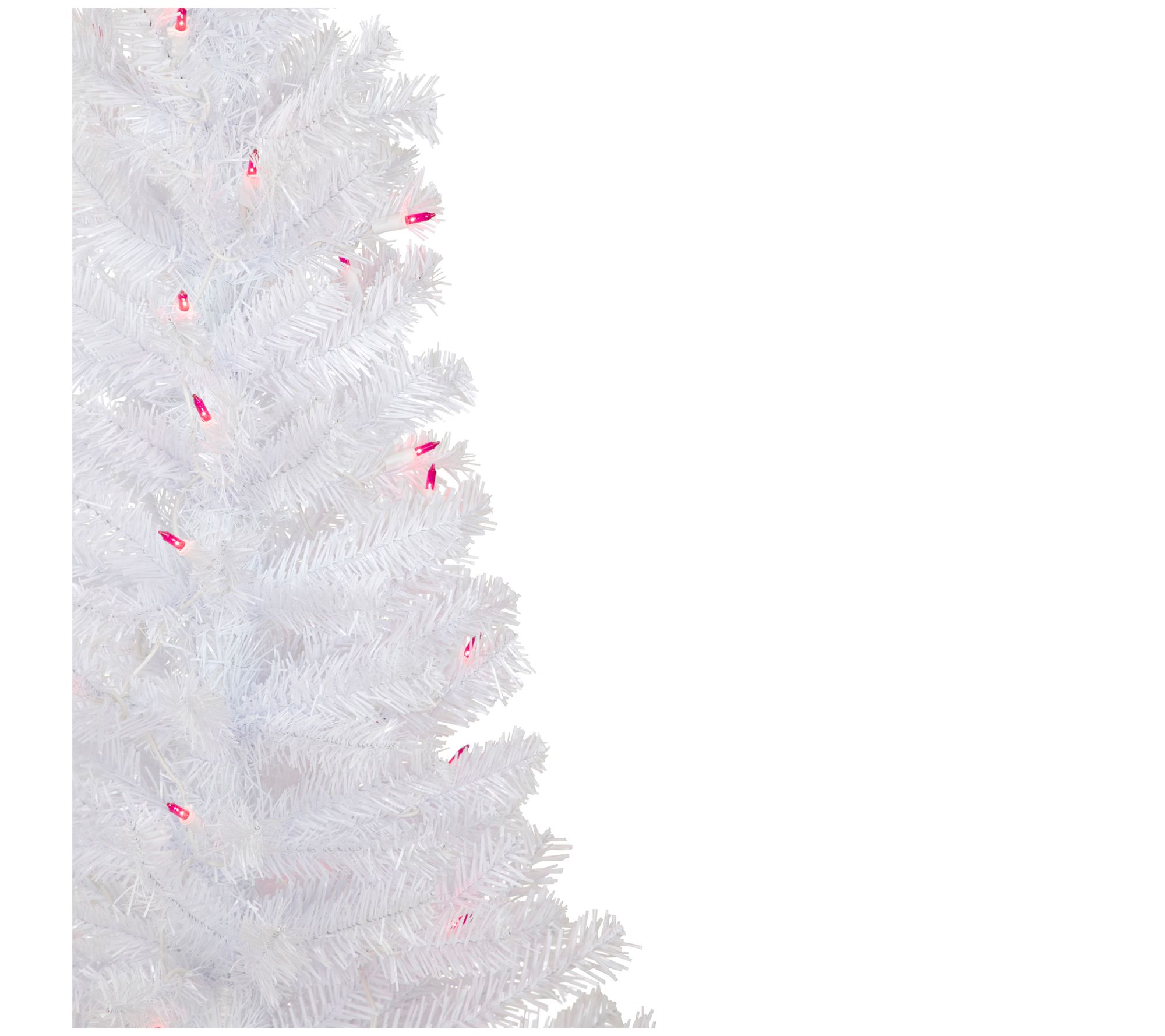 Transform your living space into a magical winter scene with the Woodbury White Pine tree adorned with pink lights. This slim-profile tree features dazzling white pine needles that beautifully reflect the light from the vibrant pink mini lights, offering a designer-inspired alternative to traditional green trees. Its lush needles provide fullness, while its slim design fits perfectly in small spaces or corners, making it an ideal choice for adding a touch of holiday cheer. From Northlight.