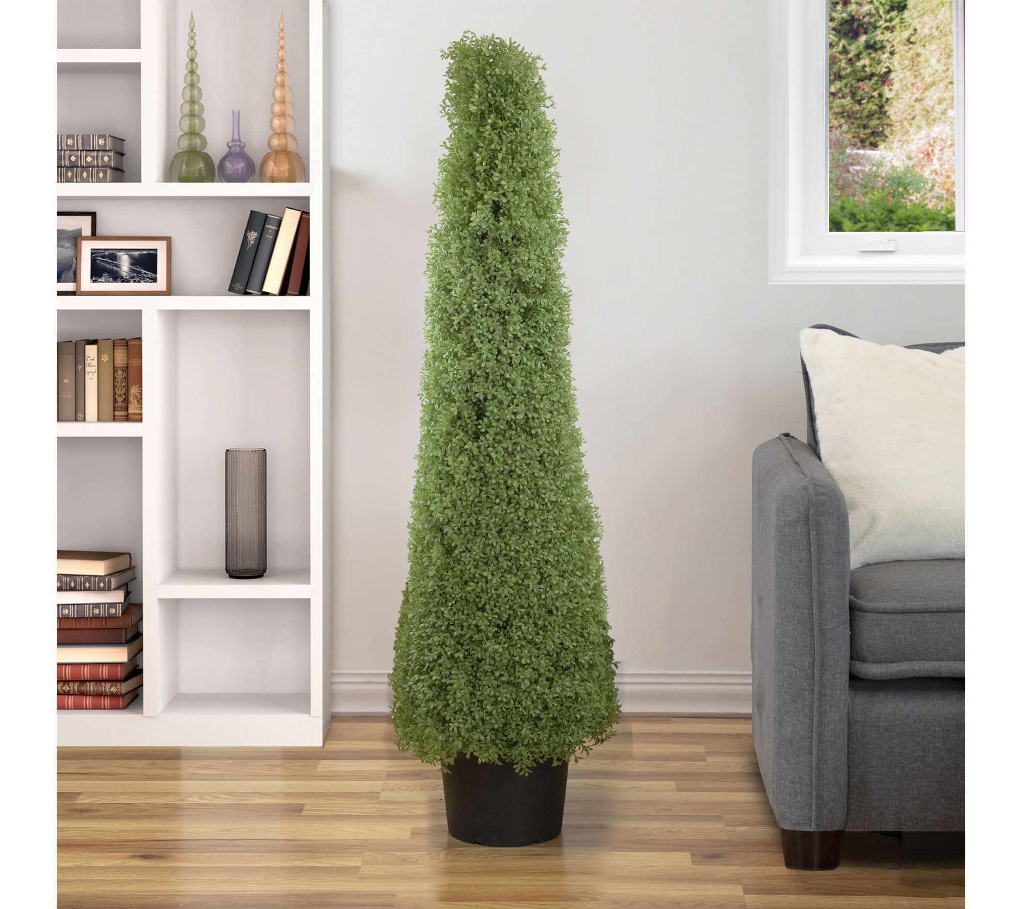 • Includes one 5' boxwood cone topiary tree in round pot