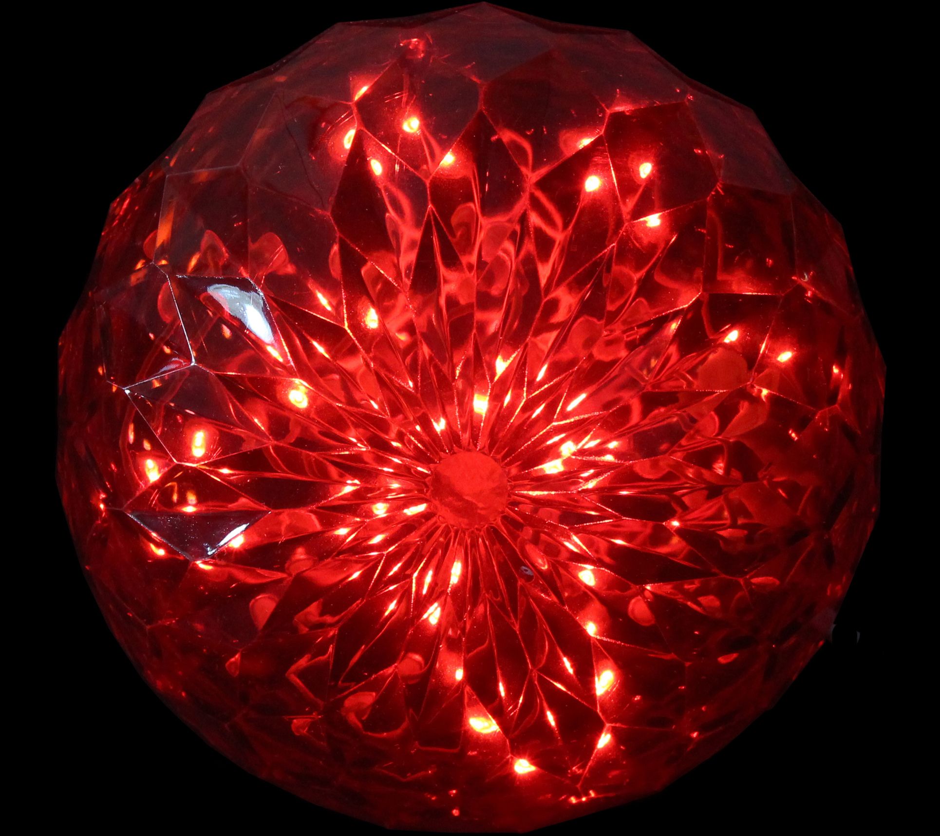 Light up the night with this ball of light. This faceted sphere illuminates red, so you can use it for a multitude of holidays. From Northlight.