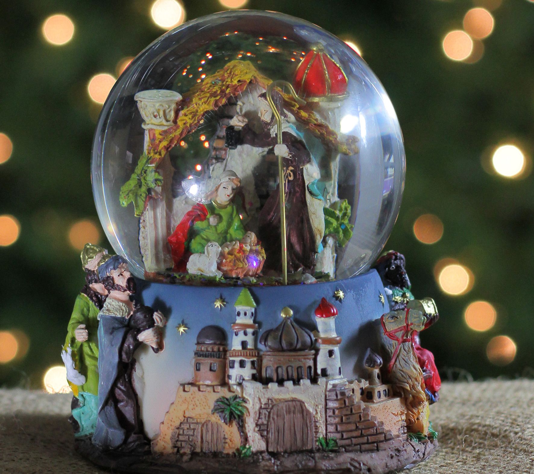 • Snow globe with nativity scene and iridescent glitter