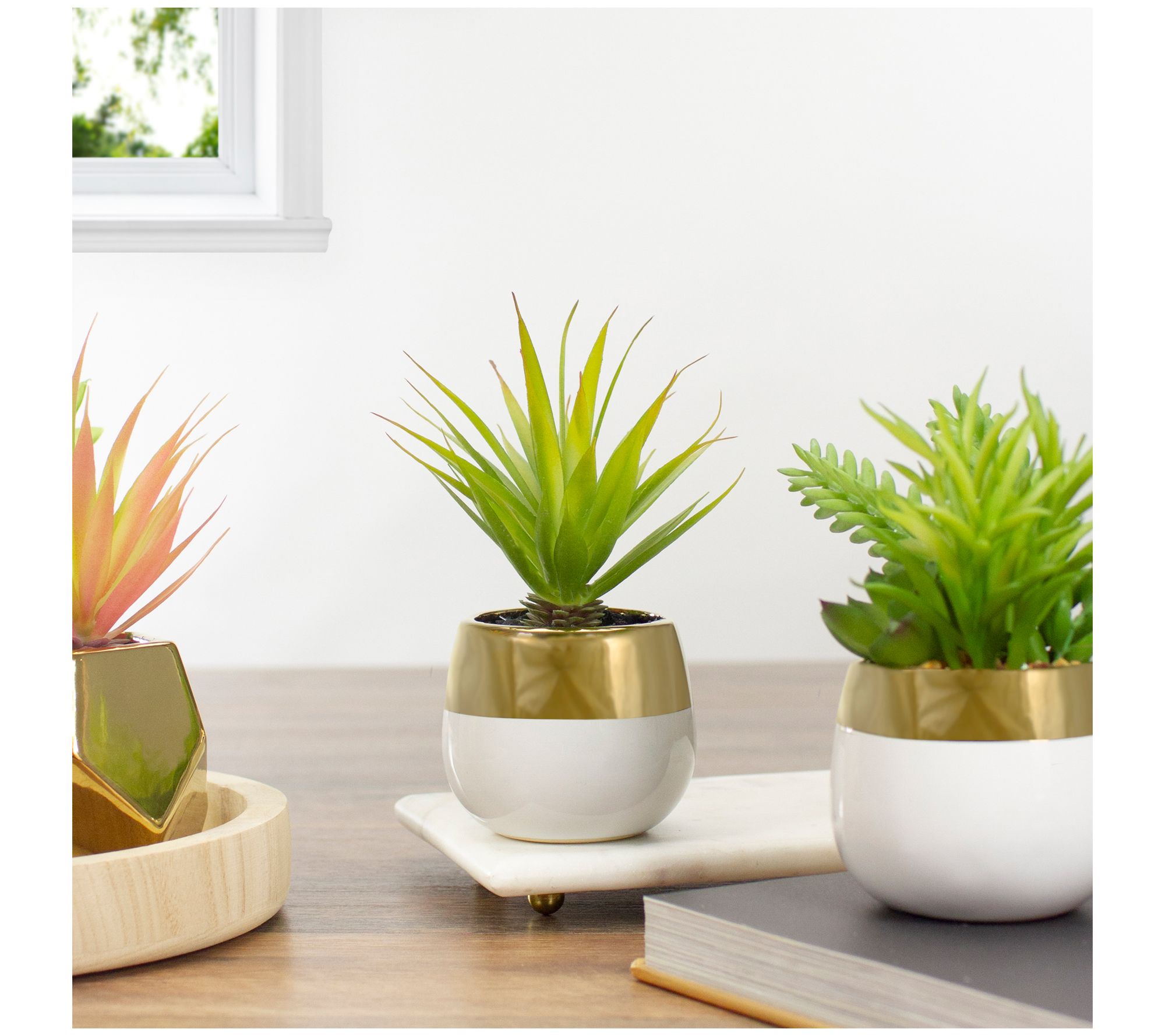 A perfect blend of natural beauty and modern style, this stunning arrangement showcases lifelike sword grass and faux soil in a crisp white ceramic pot with goldtone trim. From Northlight.