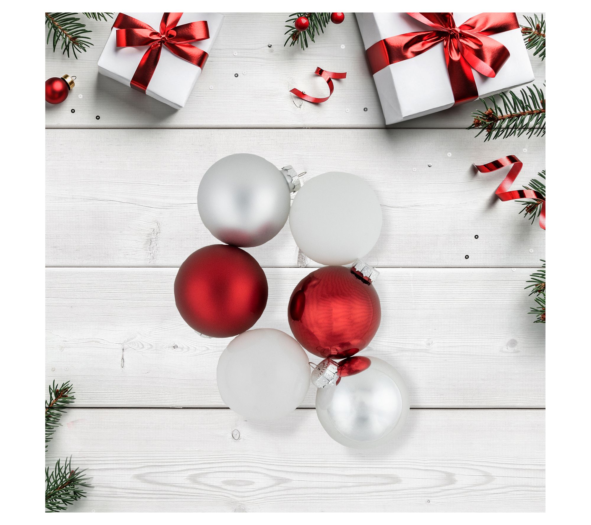 Northlight 72ct Red, Silver & White Glass Ornaments 3.25-4"
