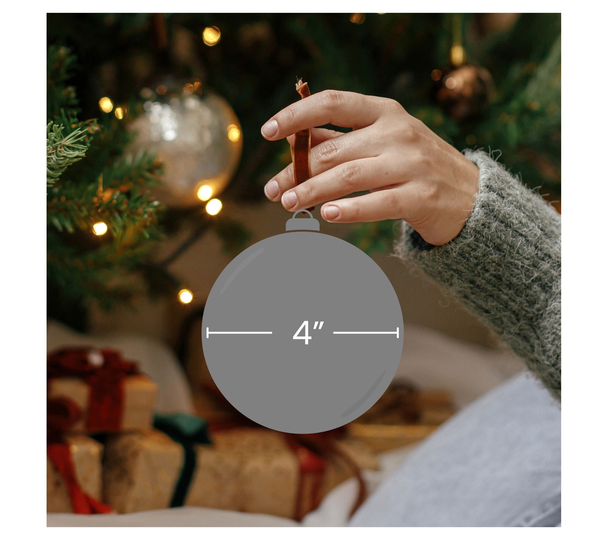• Silver ornament caps (hooks not included)