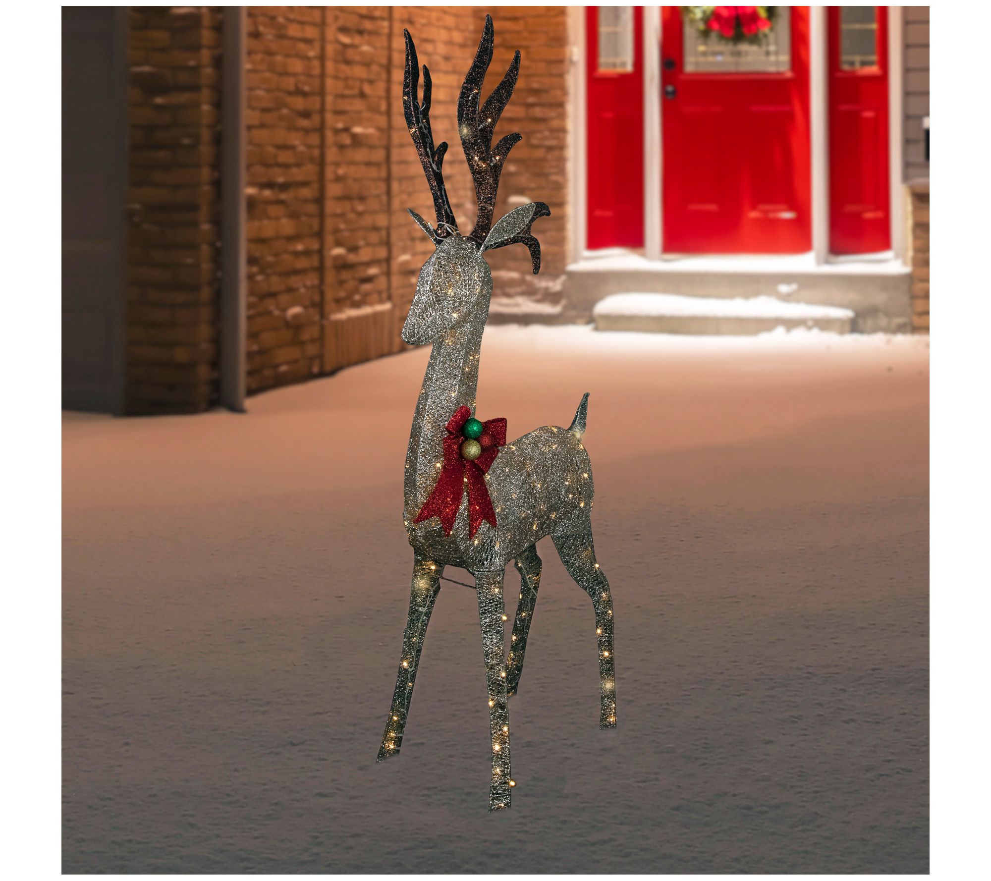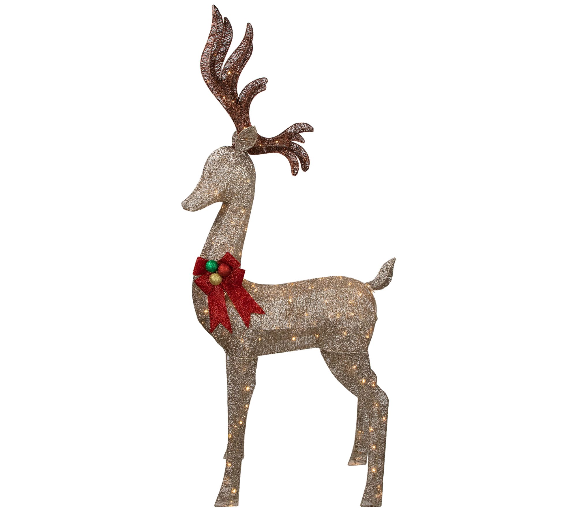 Northlight 74" LED Champagne Deer with Red Bow Decoration