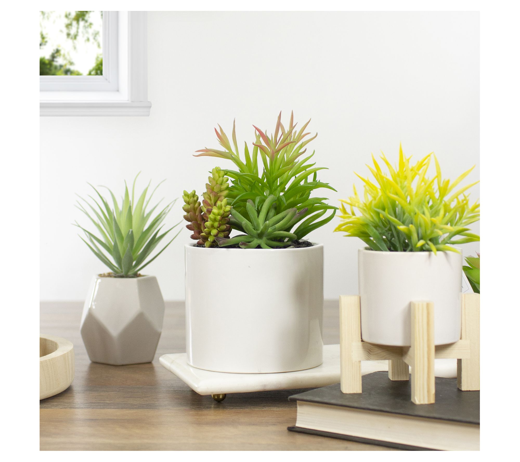 • Artificial succulent arrangement in a ceramic pot