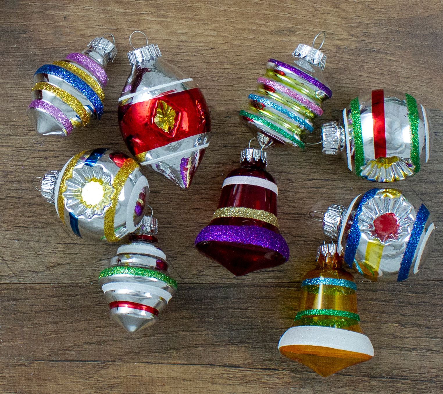 Add some vintage flair to your holiday decor with this assortment of glitter ornaments for your Christmas tree. From Northlight.