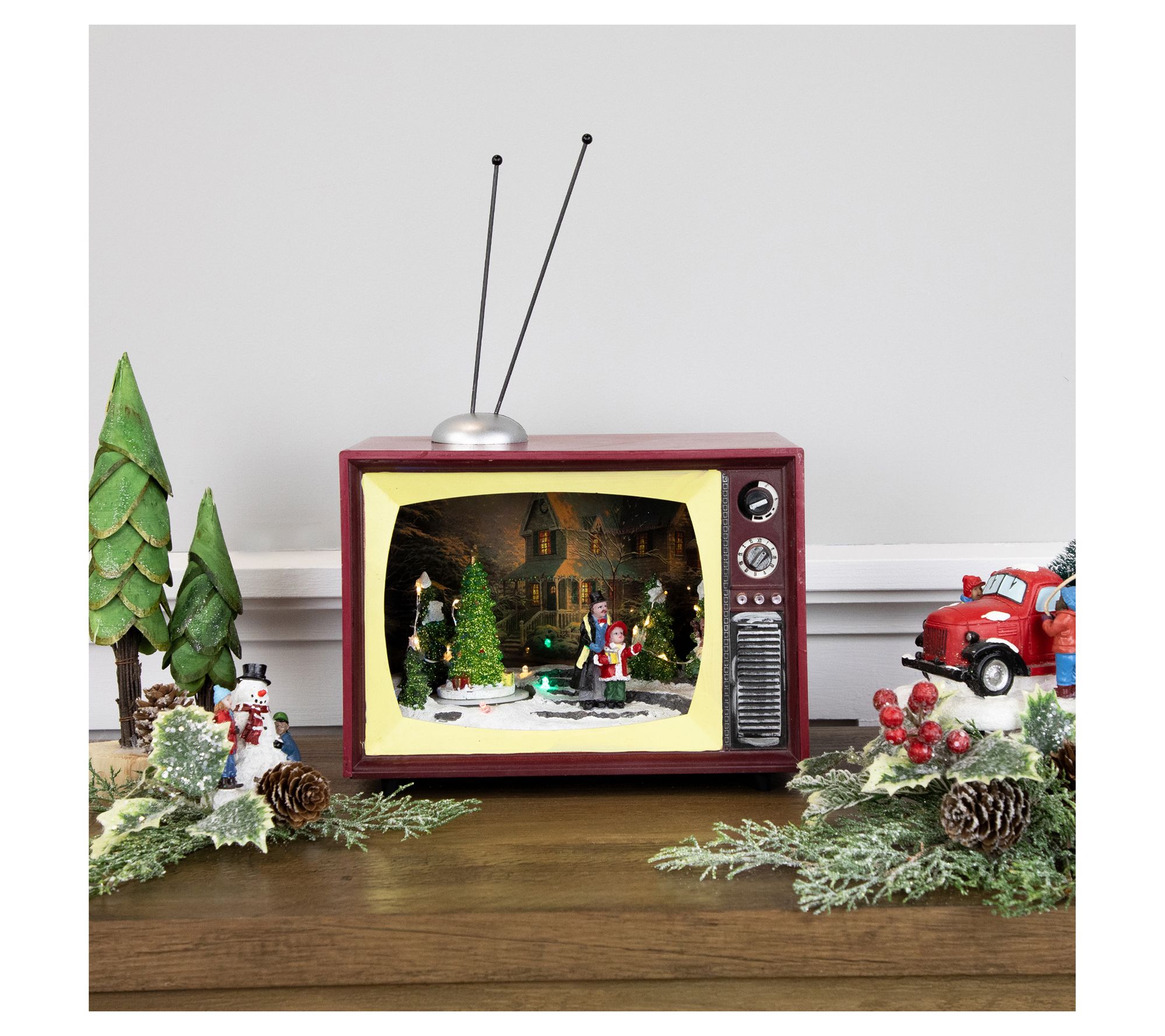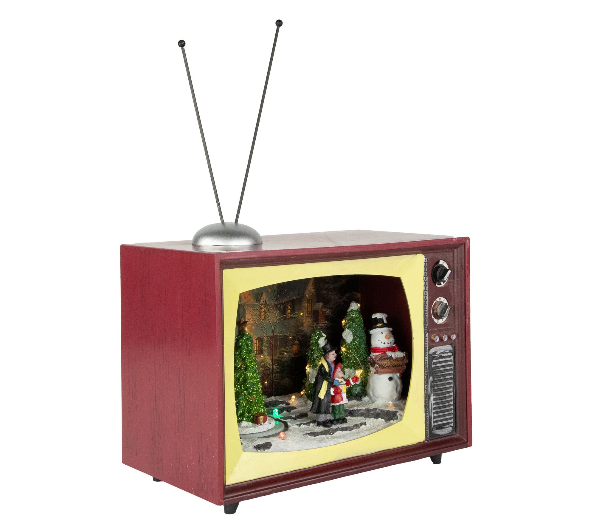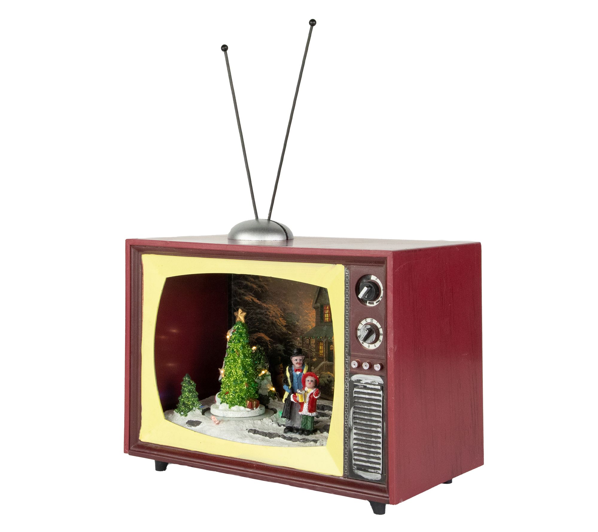 Capture the spirit of the holiday season with this charming animated TV scene. Picture a cozy evening immersed in the glow of LED lights as your favorite Christmas tunes fill the air. With a beautifully turning tree at its center, this delightful display makes every corner of your home feel like a festive wonderland, perfect for mantelpieces, bookshelves, or any spot needing a sprinkle of holiday magic. From Northlight.