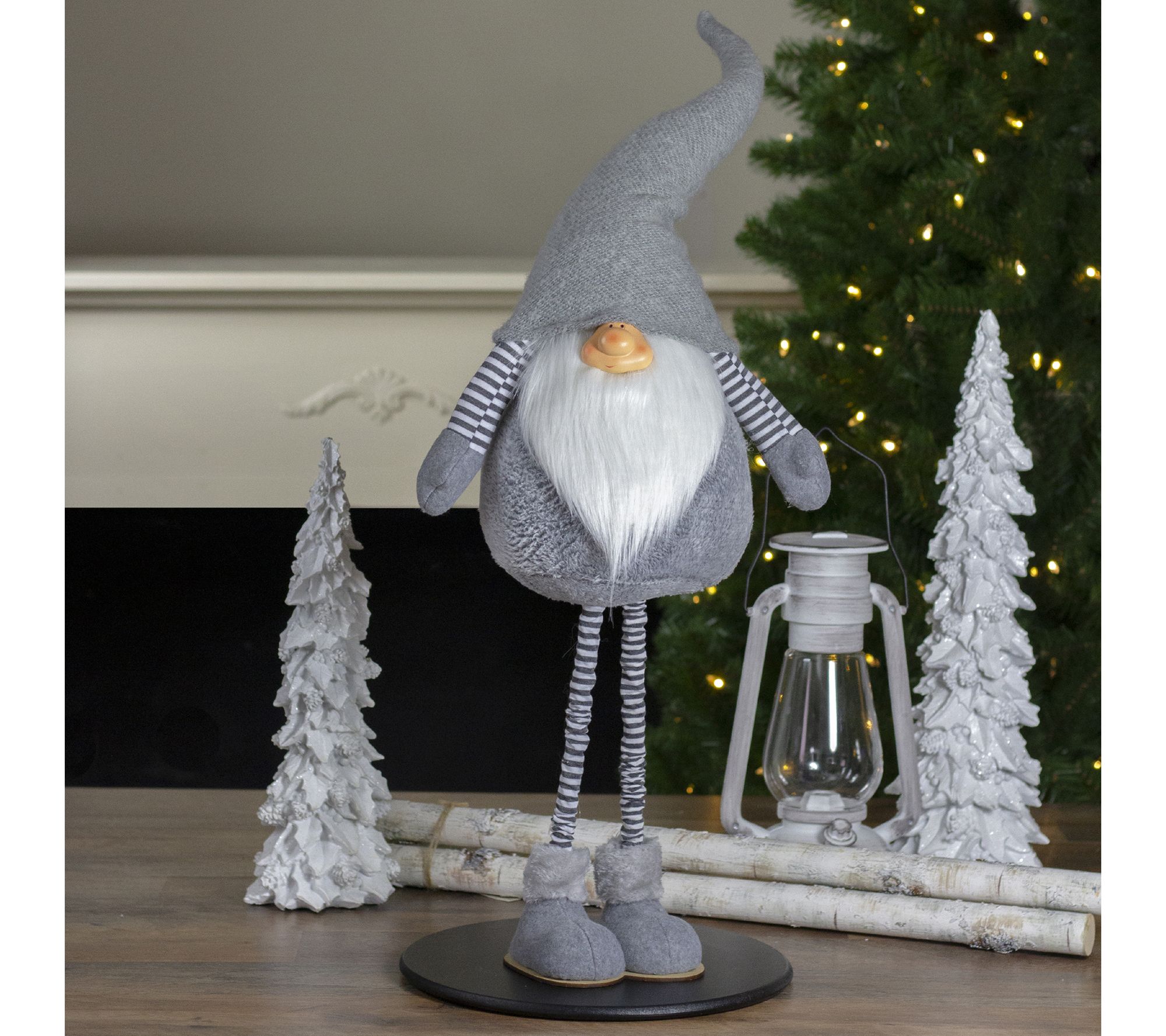 Long adjustable legs, fluffy faux fur, and a light gray knitted hat make him a fun addition to your holiday decor. From Northlight.