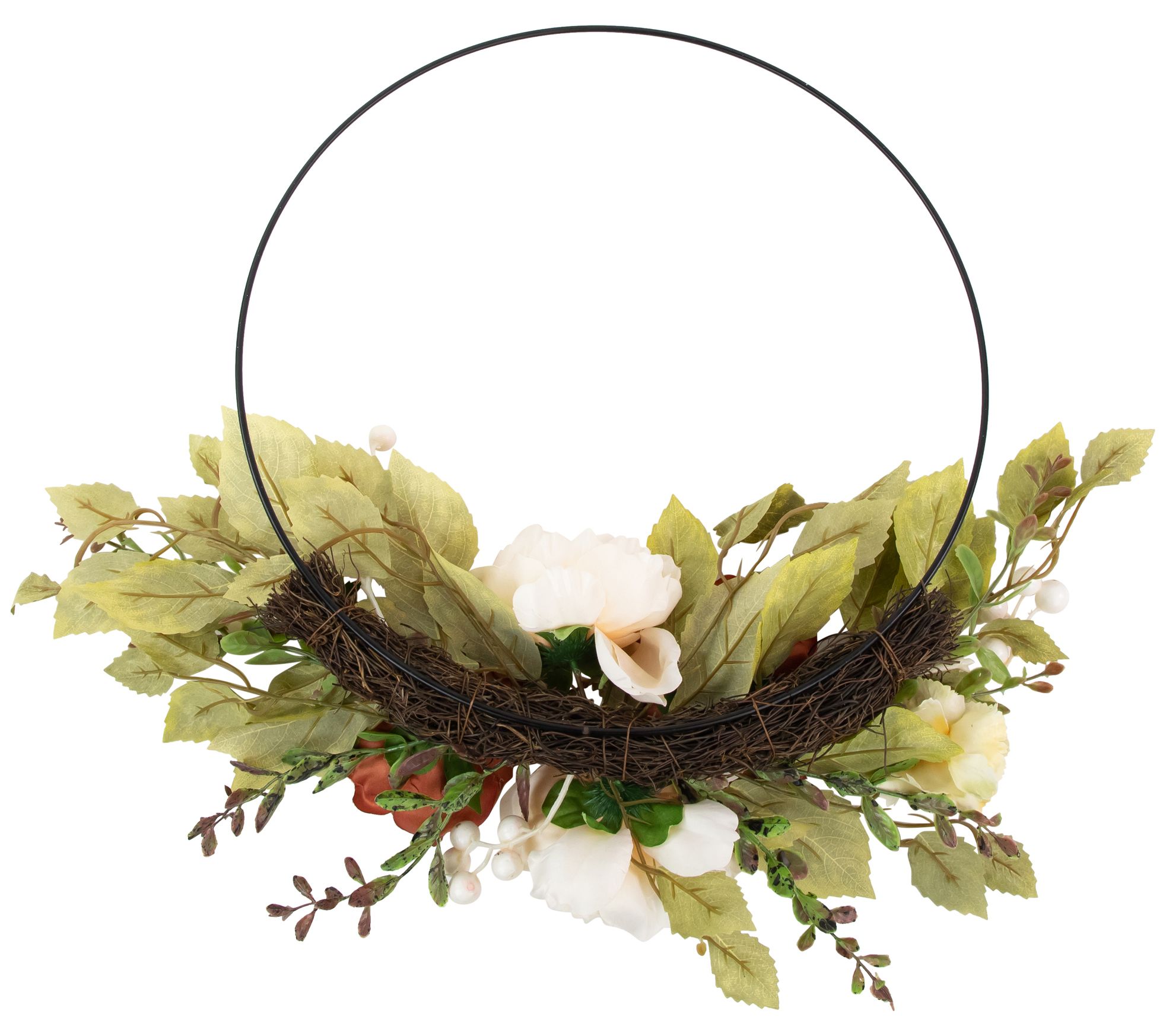 Add warm autumnal charm to your entryway or mantel with this lovely half wreath boasting lifelike flowers and leaves. From Northlight.