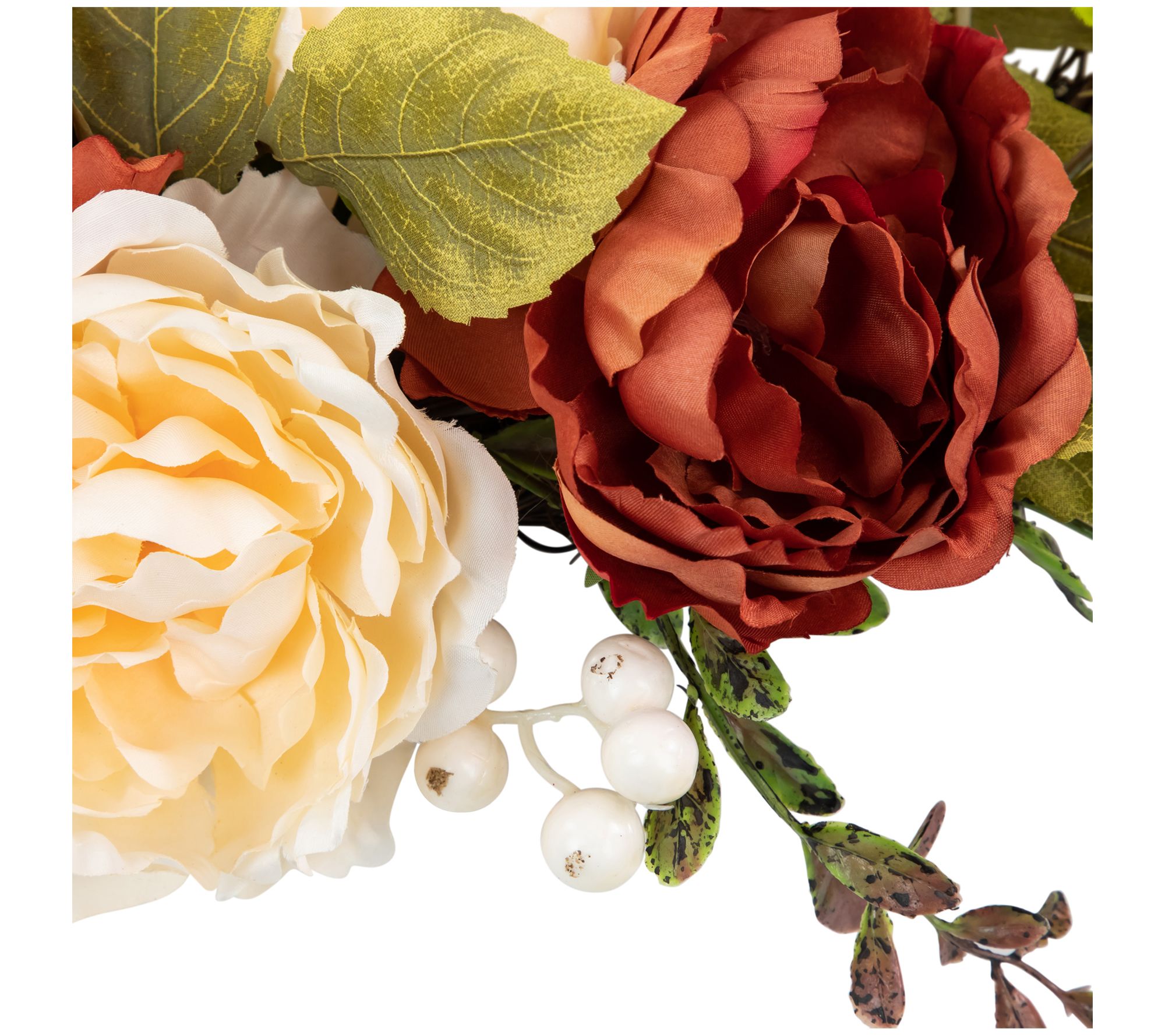 • Features lifelike cream and orange flowers accented with green foliage and white berries