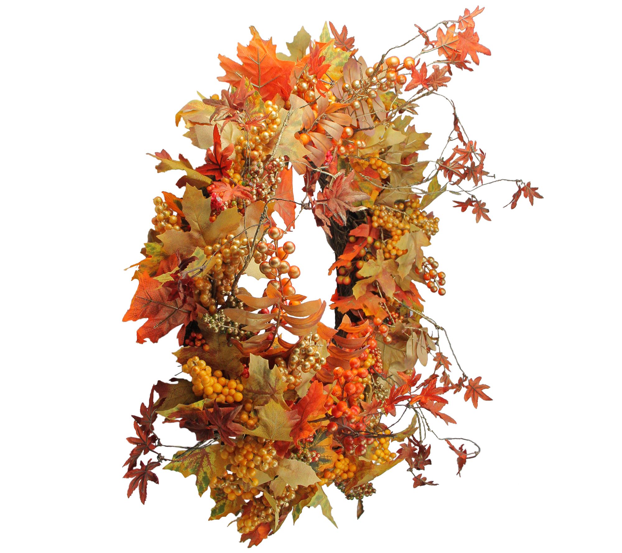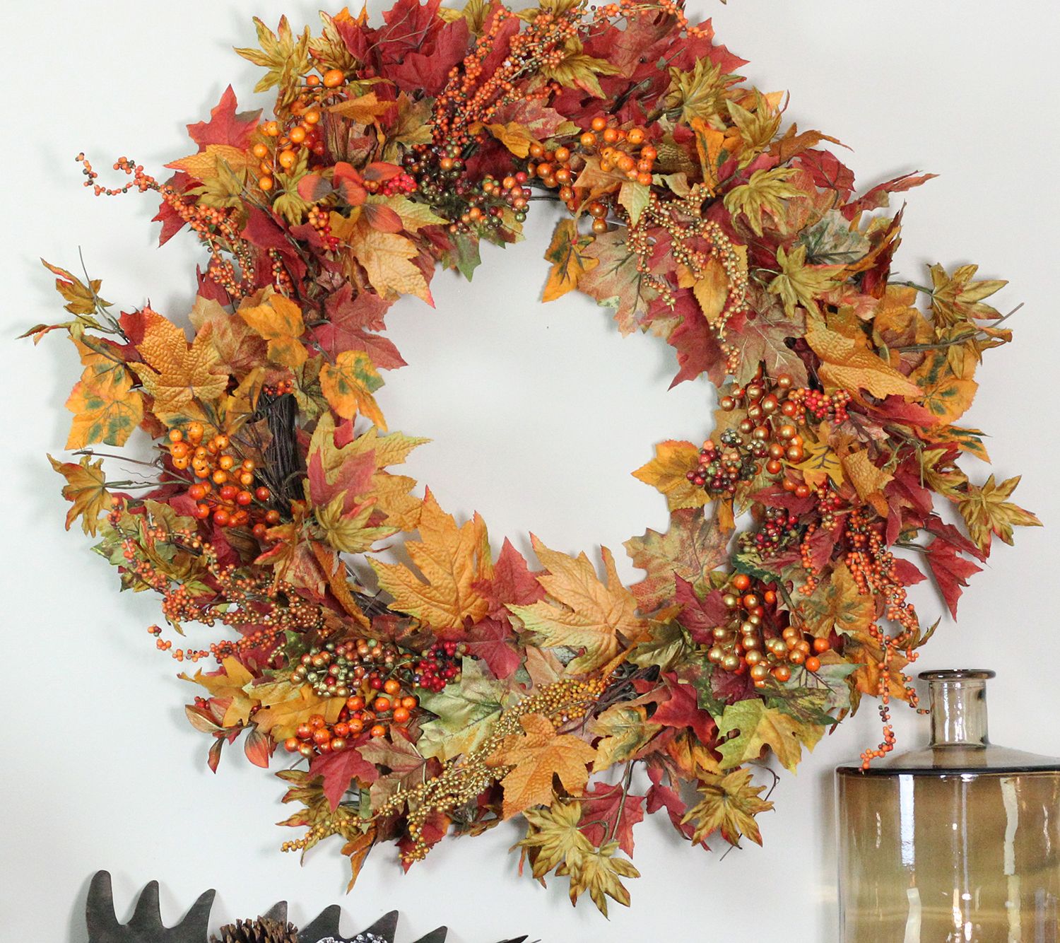 Northlight Autumn Harvest Leaves with Berries Wreath
