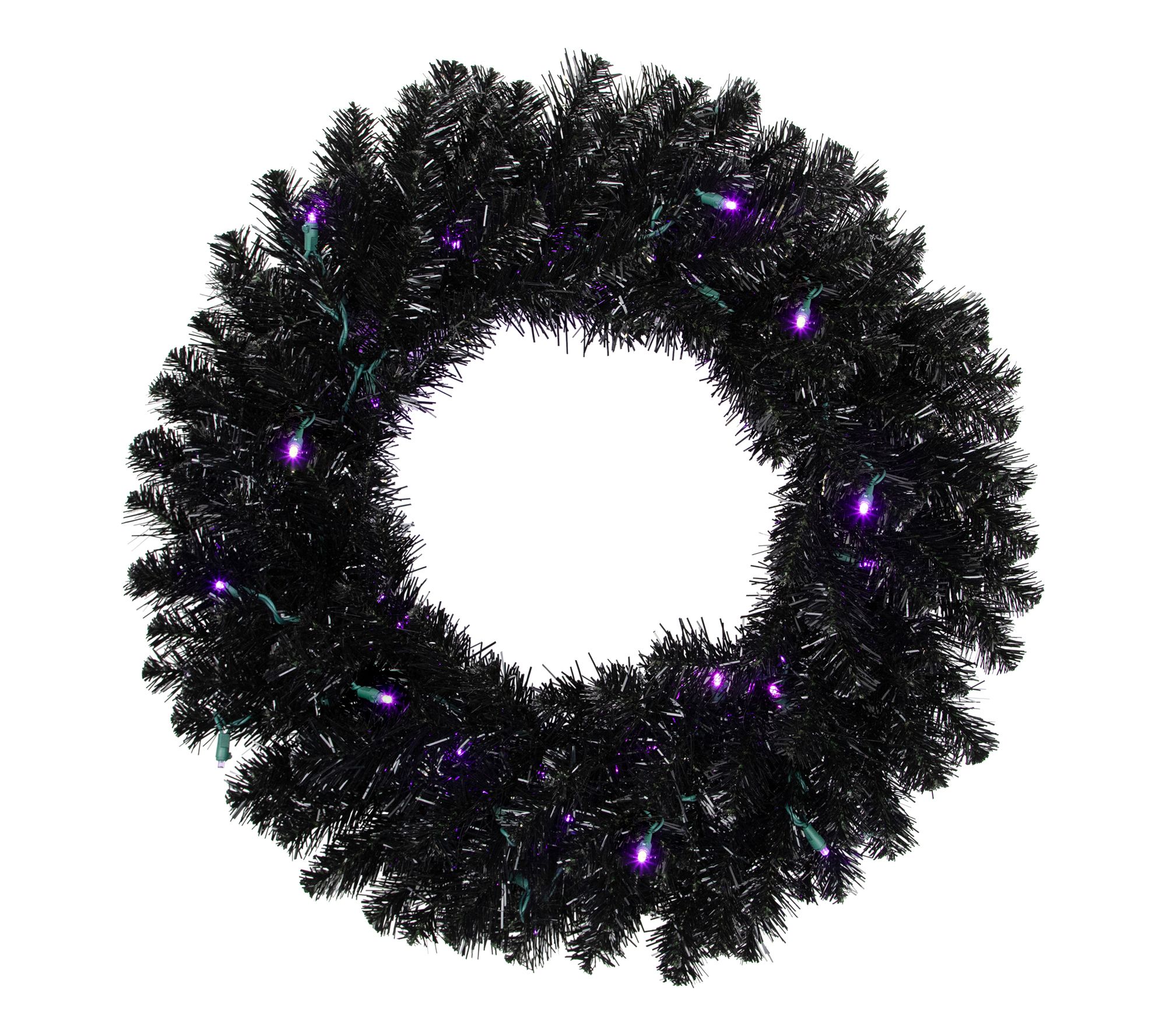 Northlight Black Crystal Pine Halloween Wreath 24" LED