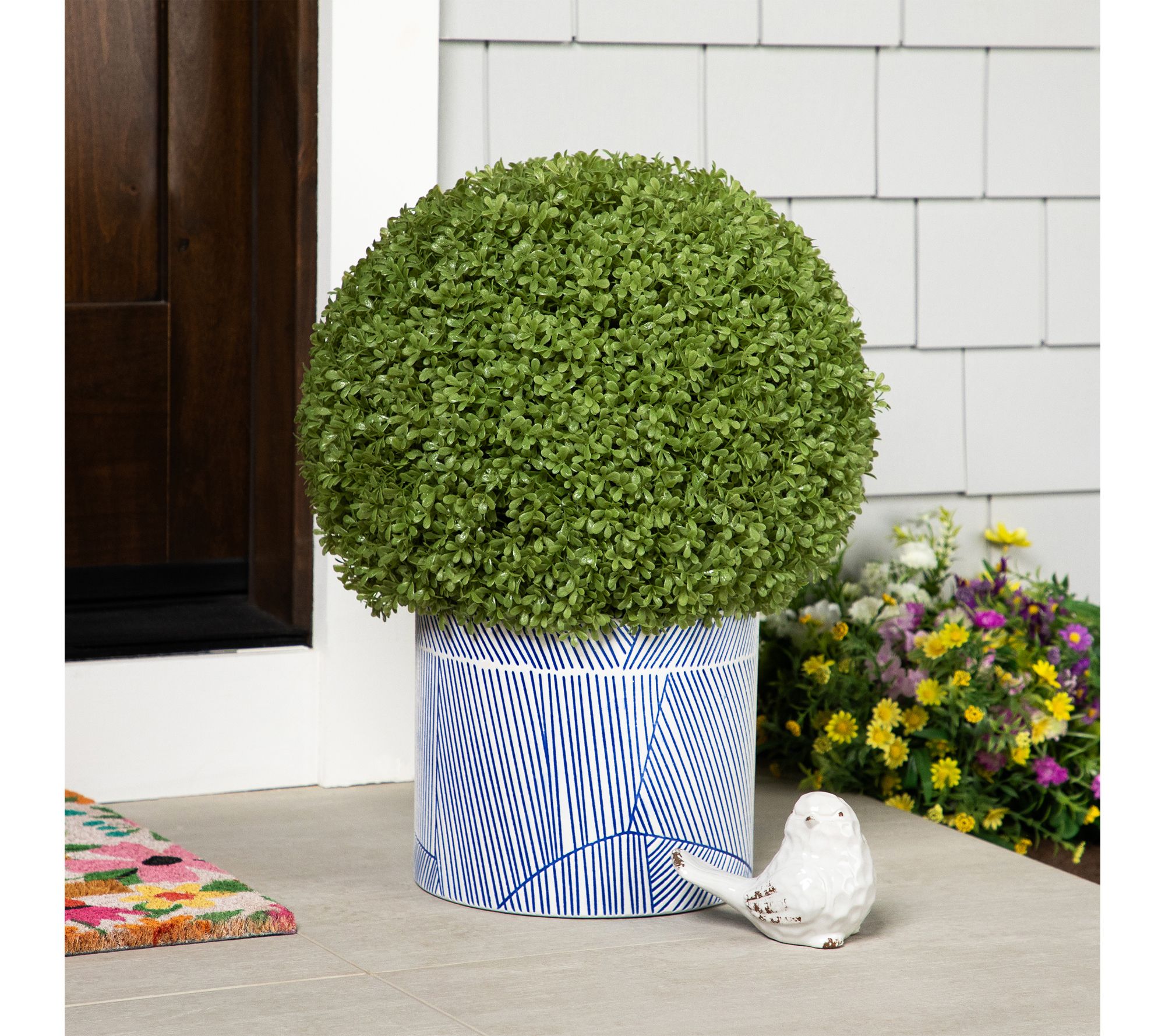 • Includes one Northlight Boxwood Ball Faux Topiary in Weighted Pot