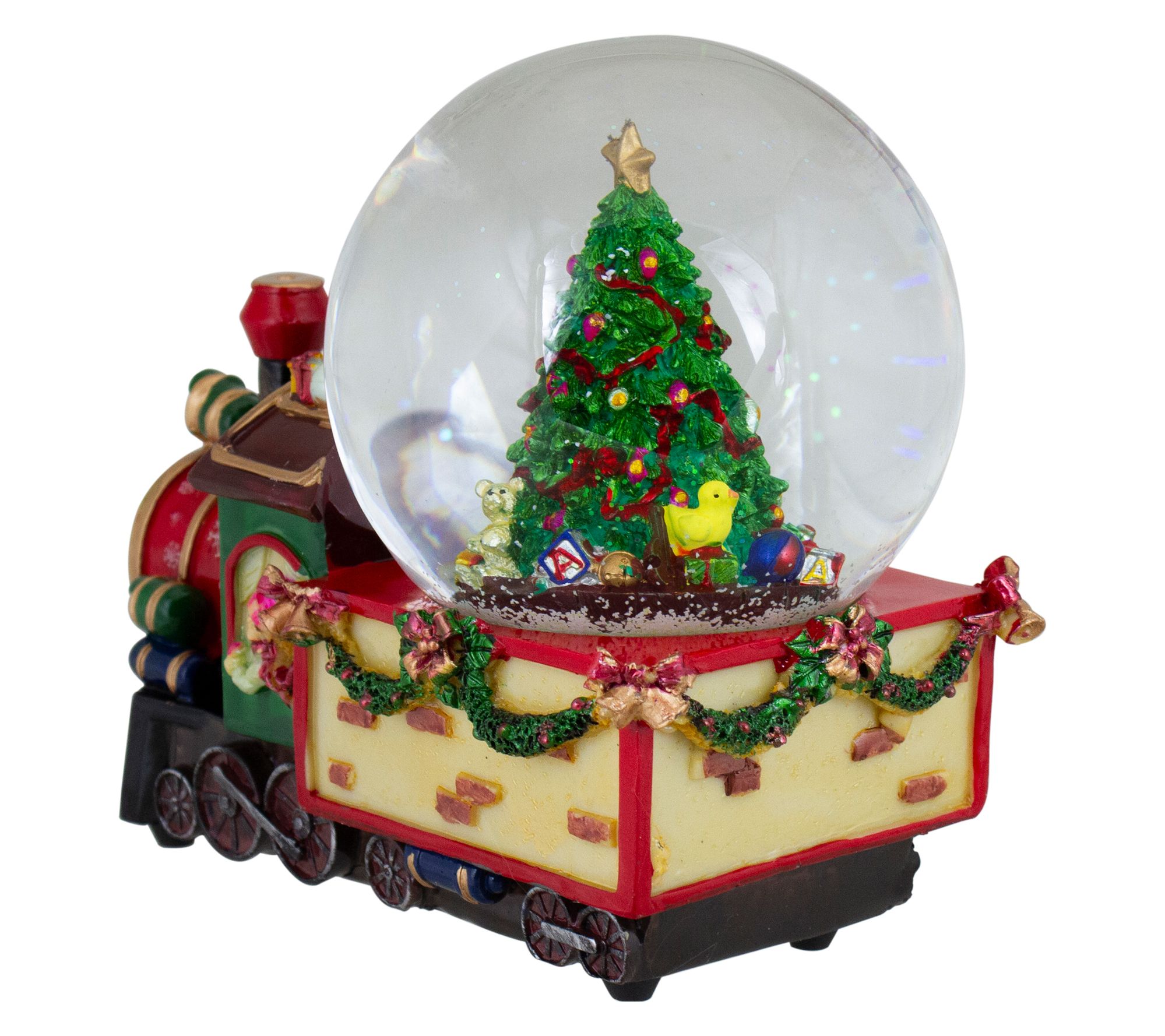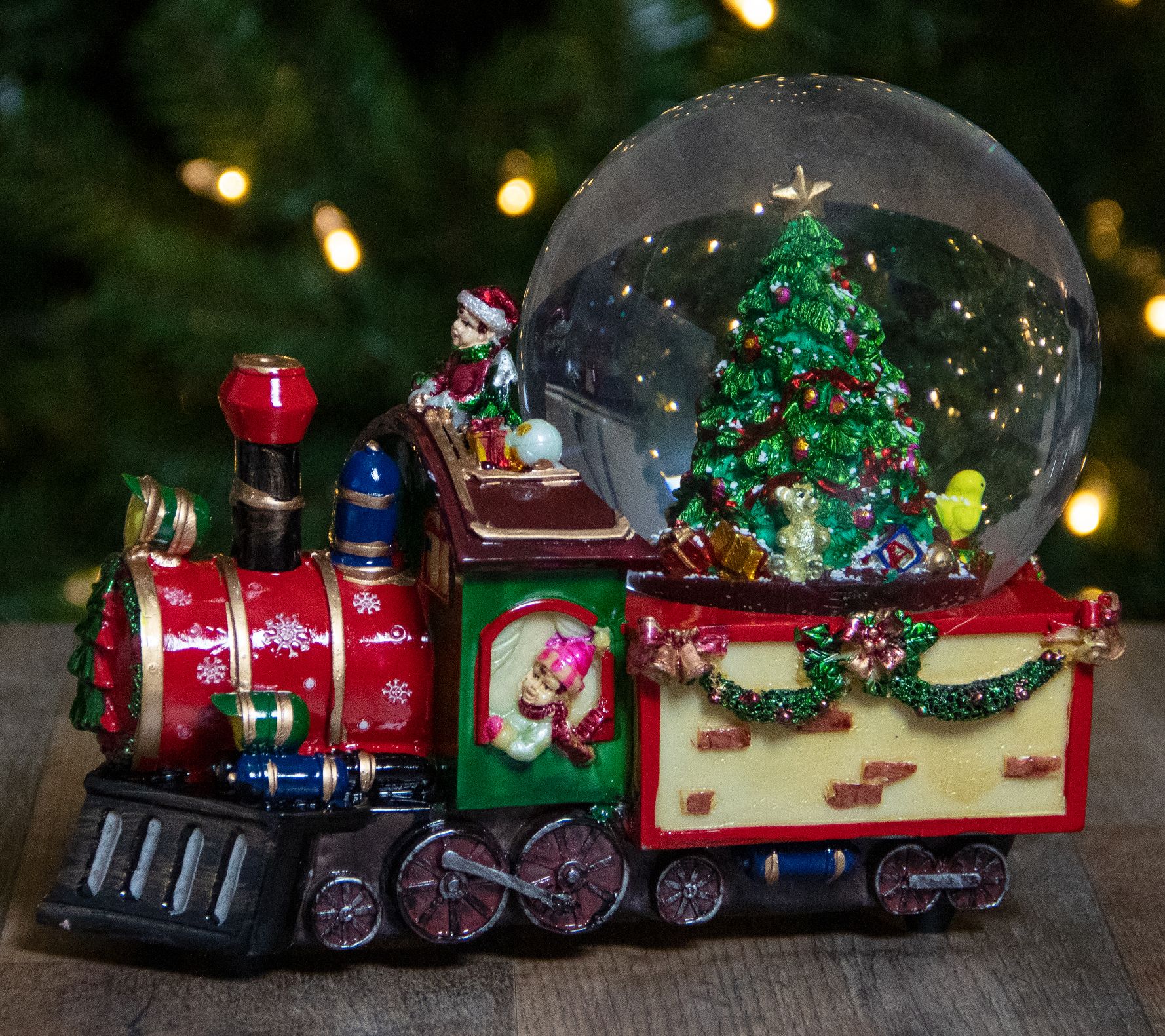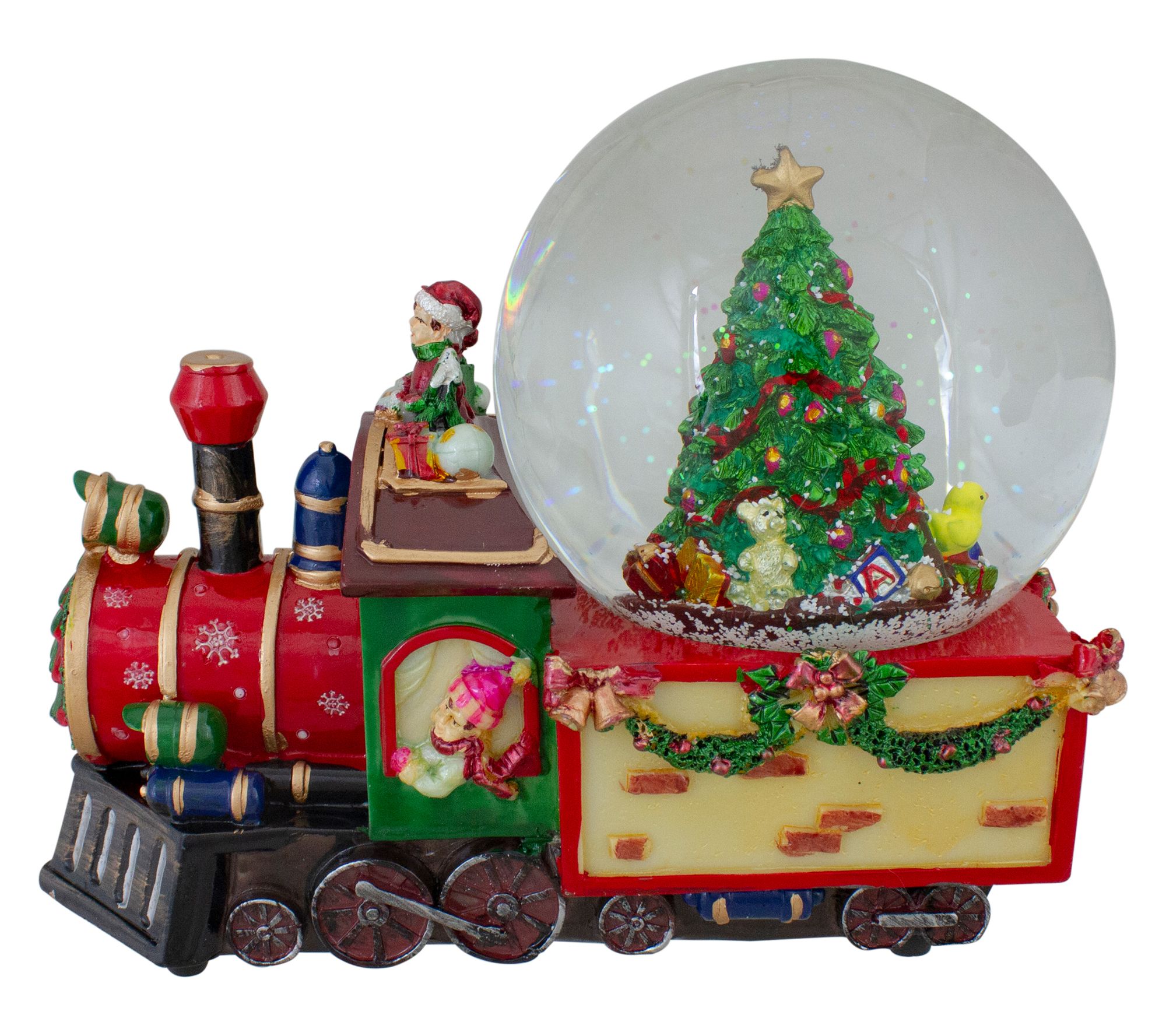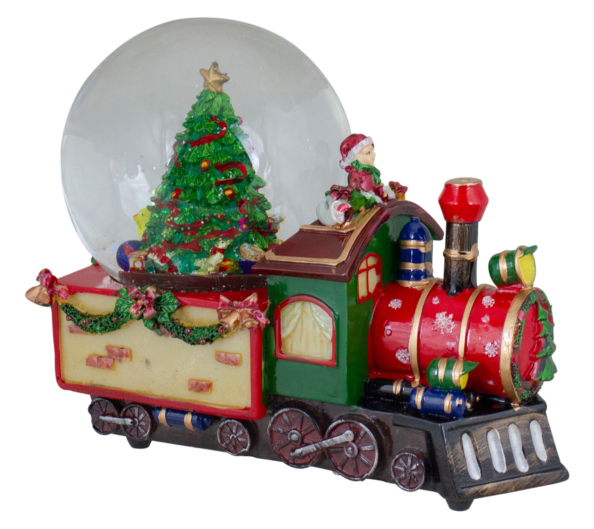 • Includes Christmas train with tree snow globe decor