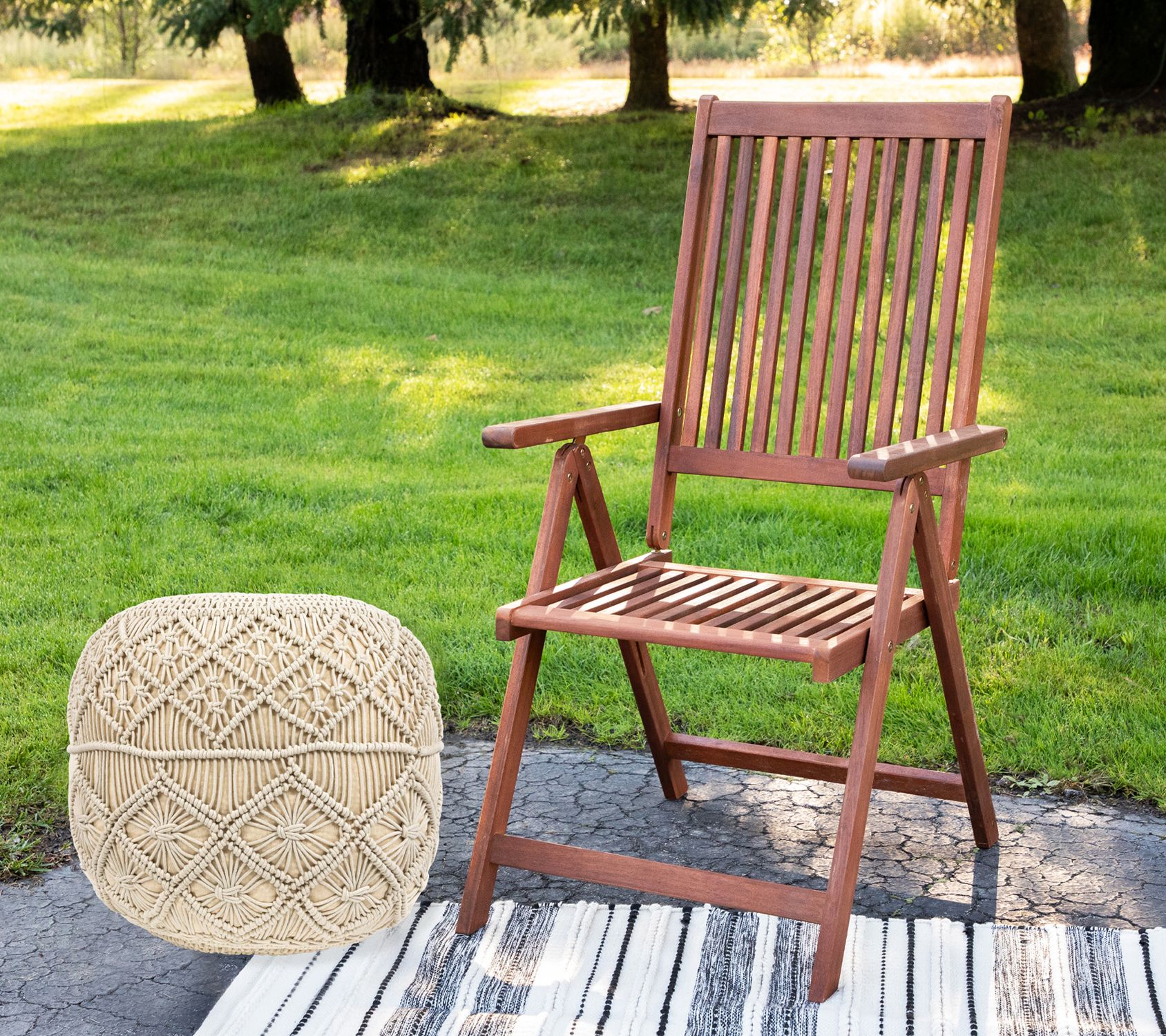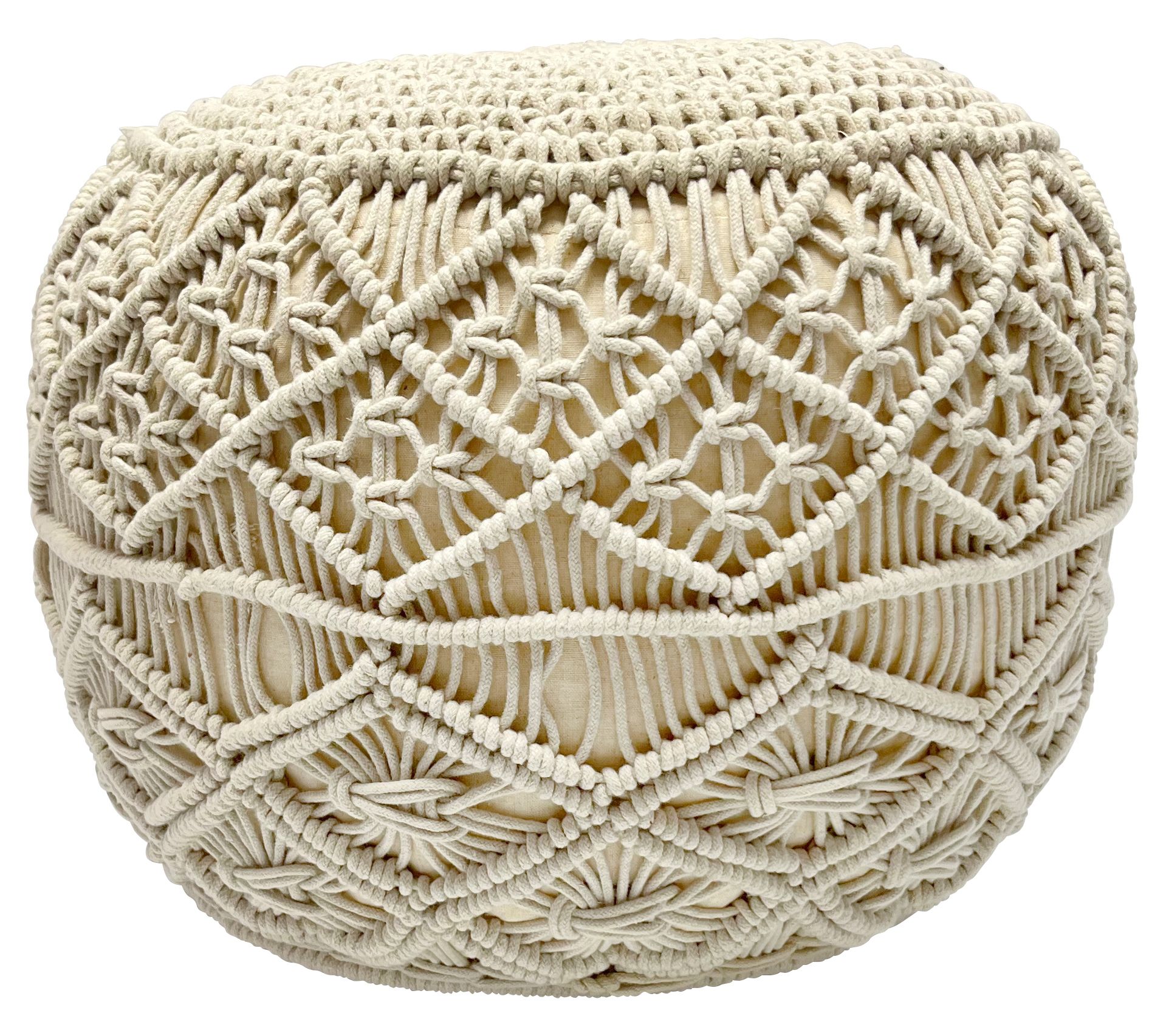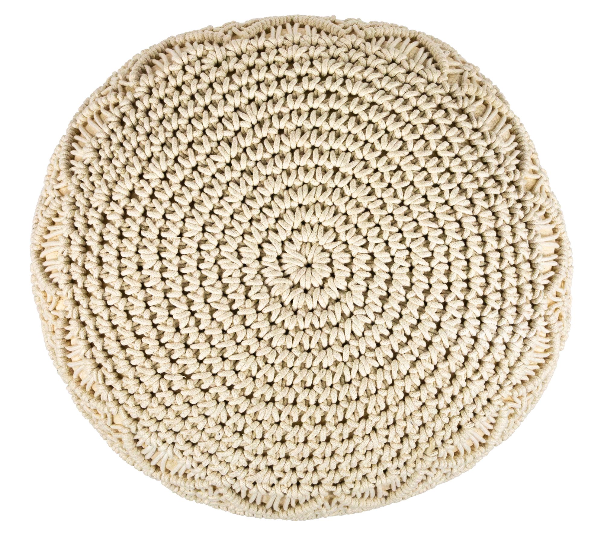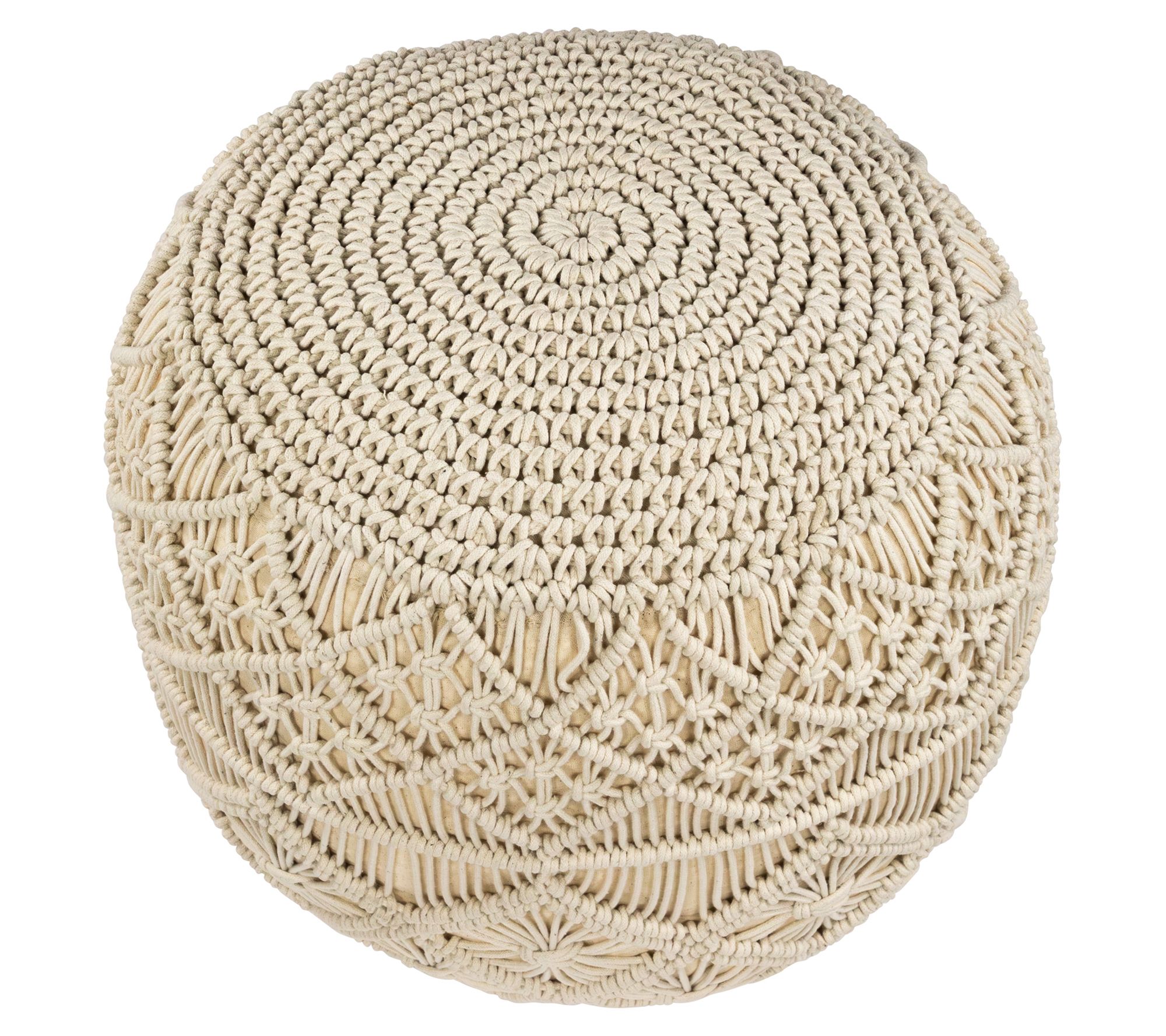 • Includes 18" Solid Cream Macrame Round Cotton Pouf