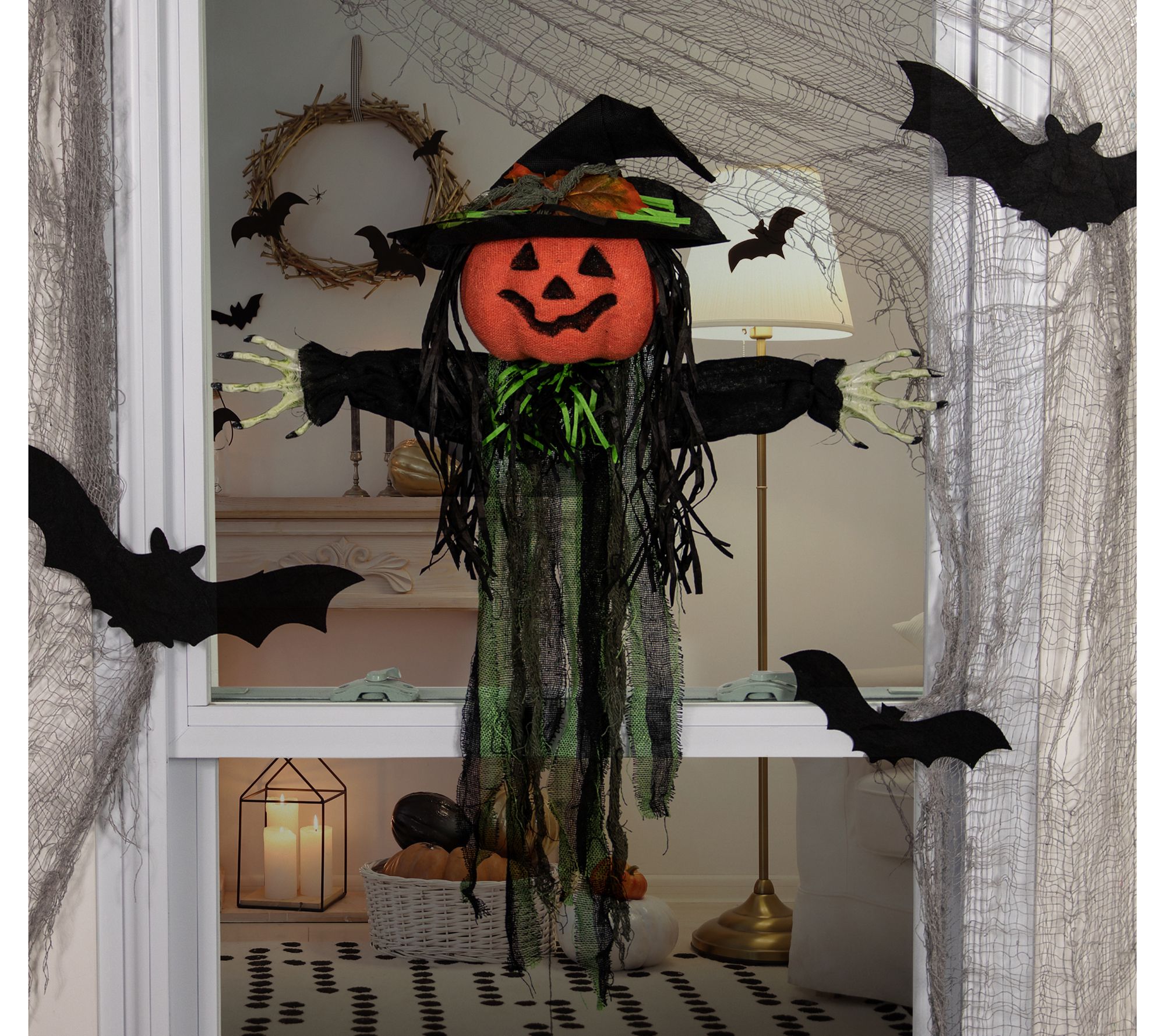 Bring spooky fun to your home with this Creepy Jack-O-Lantern 3-D Halloween window decor. Watch as its hooded head and eerie hands seem to reach right through your window, creating a playful fright for all who pass by. Lightweight and easy to install, it clings firmly to any smooth surface for a festive touch. From Northlight.