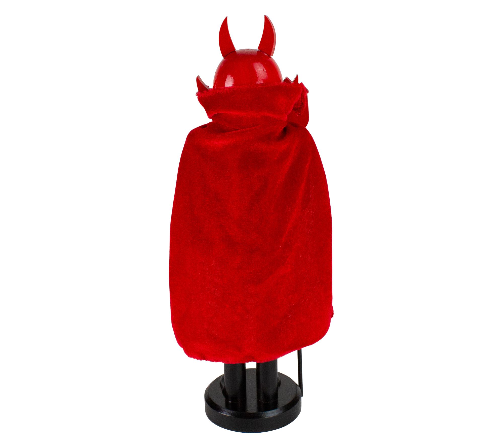 Welcome guests with a mischievous touch by displaying this devil Halloween nutcracker on your table, mantel, or desk. The vibrant red vest, dramatic cloak, and pitchfork bring a spooky twist to seasonal decorating, while the painted details and movable mouth capture the playful spirit of Halloween. From Northlight.