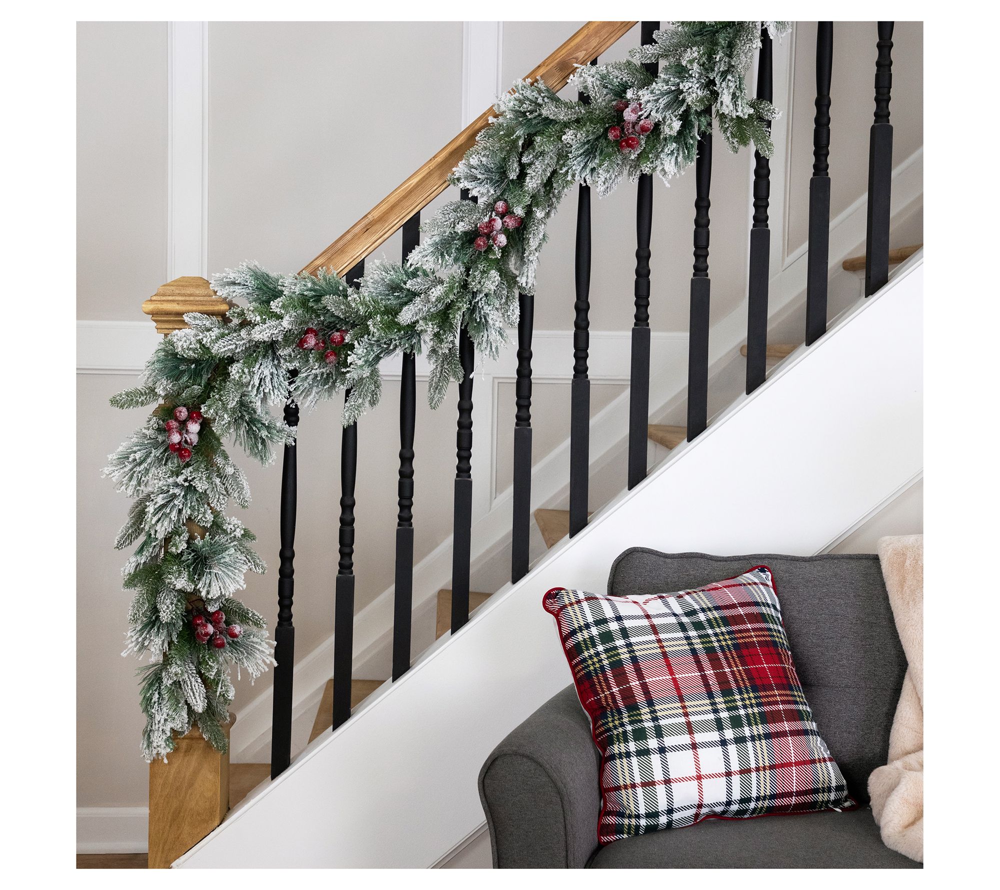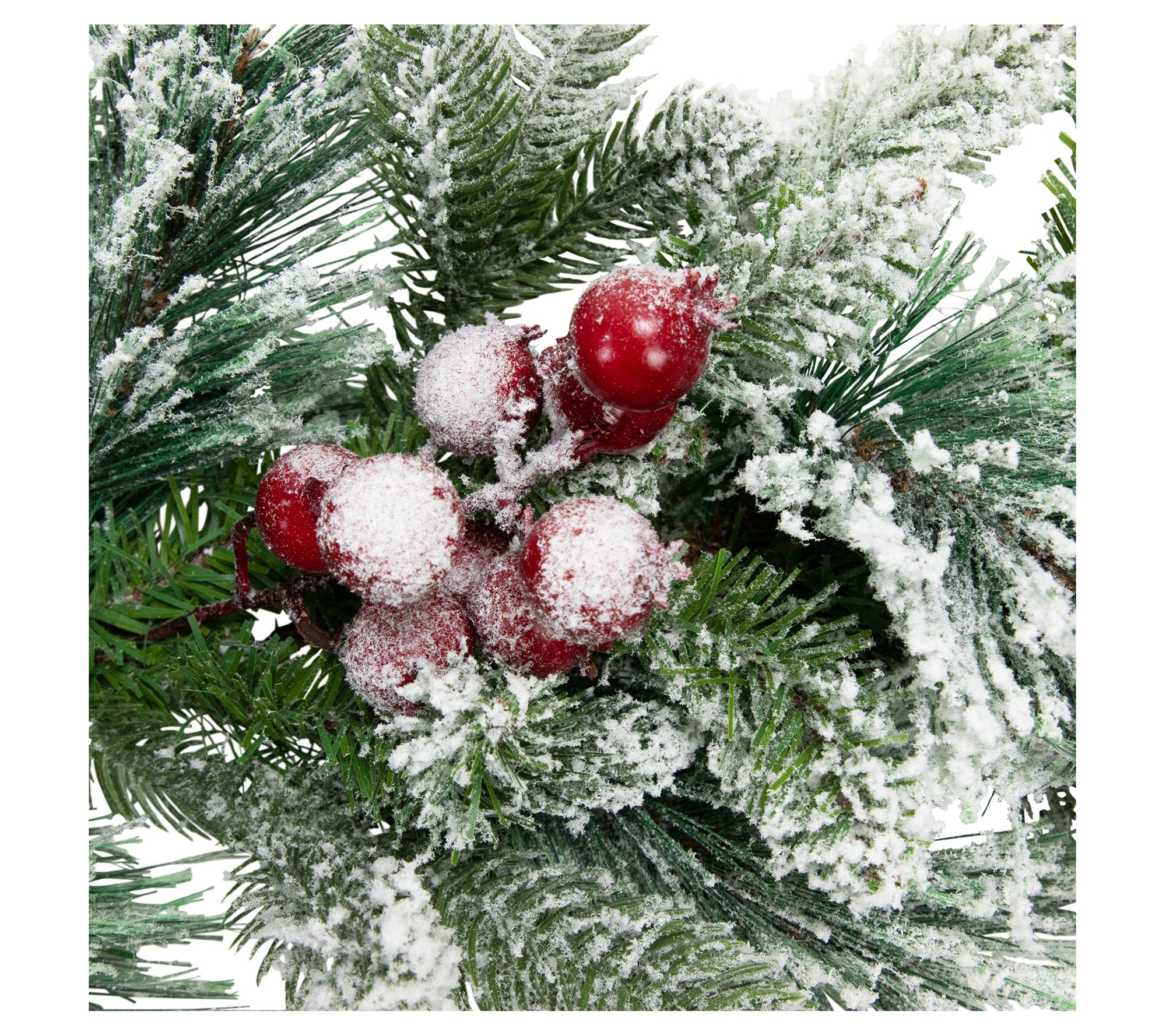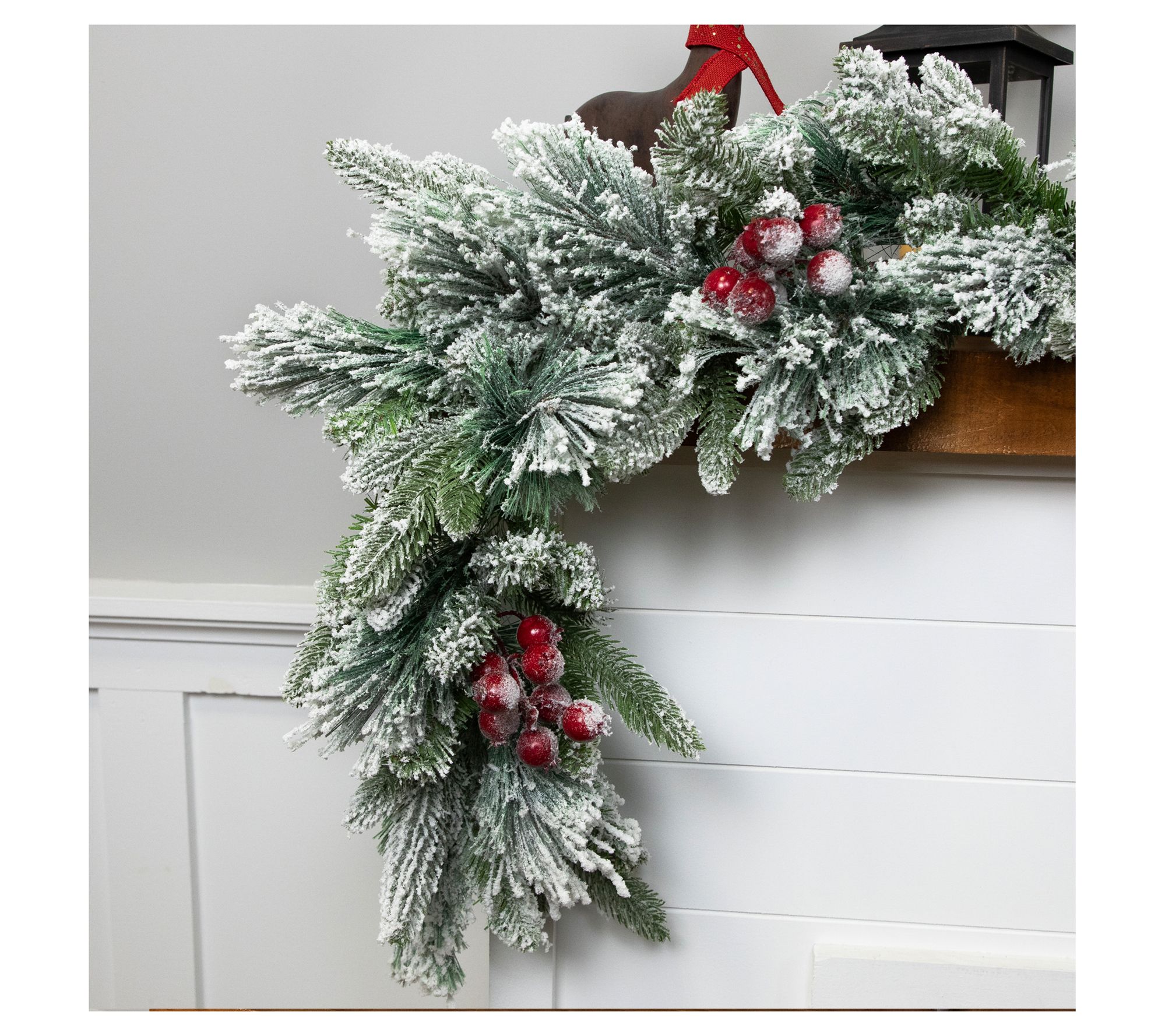 • Includes flocked fir garland with berries