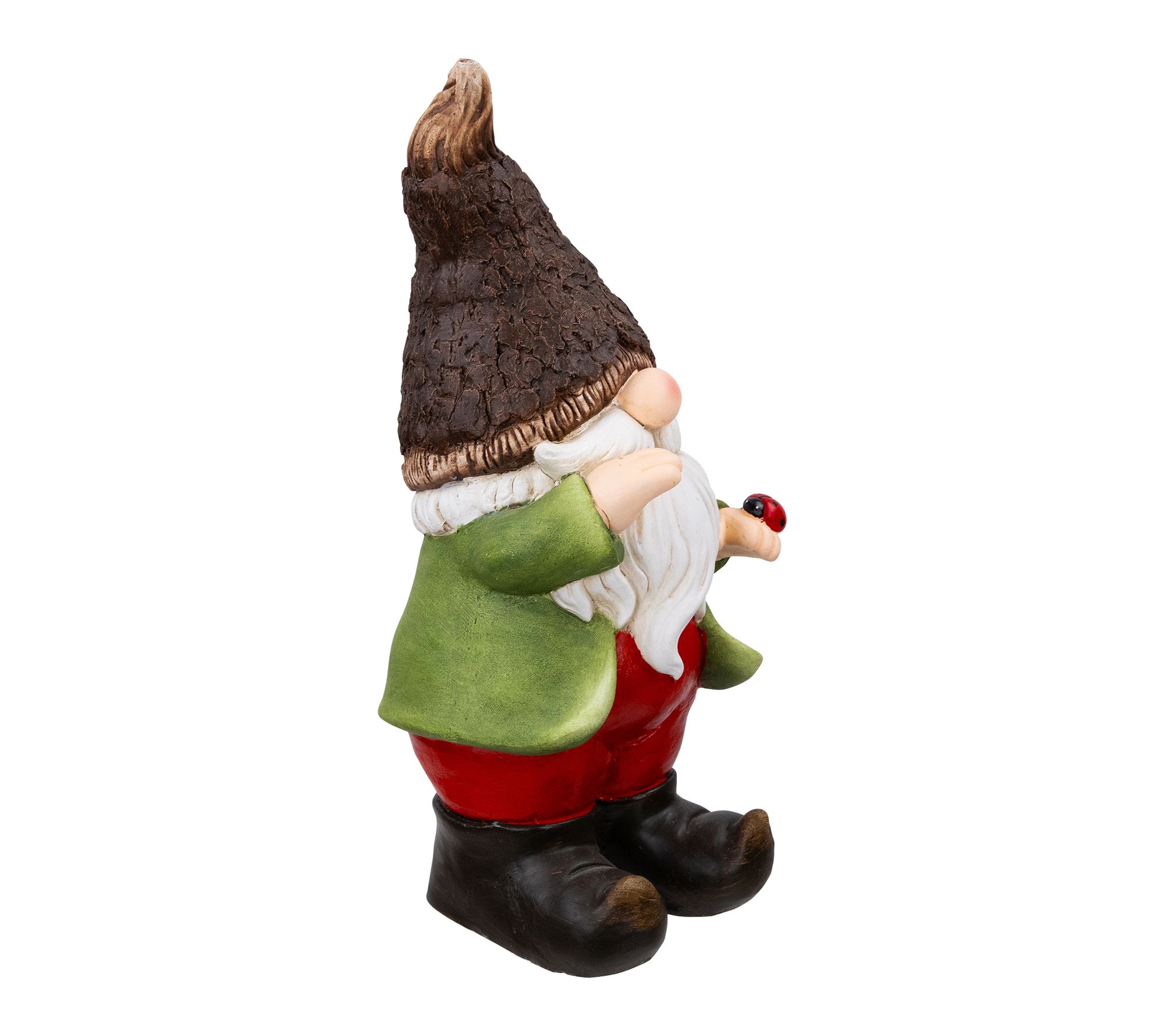 Bring a playful spirit to your yard with this gnome garden statue, dressed in a cheerful green jacket and vibrant red pants, gently holding a ladybug. The carefully detailed wood-look hat and warm smile make it a charming addition to patios, garden beds, or entryways, ready to greet guests and brighten any outdoor space. From Northlight.