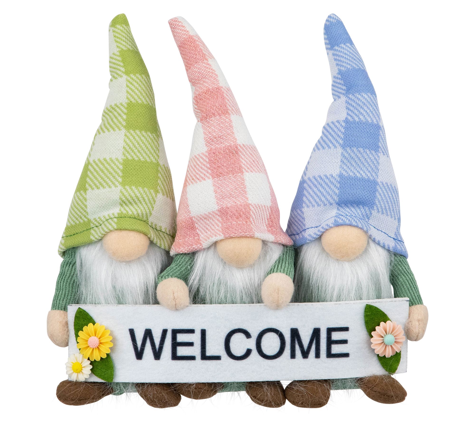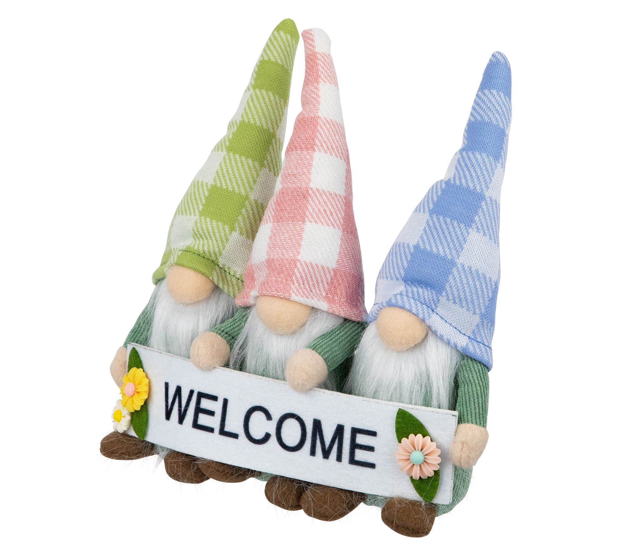 Step into a whimsical world of enchantment with this charming trio of gnomes! Dressed in delightful pastel colors and adorned with checkered hats, these lovable little beings are here to welcome you with open arms. In their tiny hands, they proudly hold a sign that reads "Welcome" adorned with vibrant flowers. Bring a touch of magic and warmth to your space with this adorable gnome trio, a perfect blend of fantasy and hospitality. From Northlight.