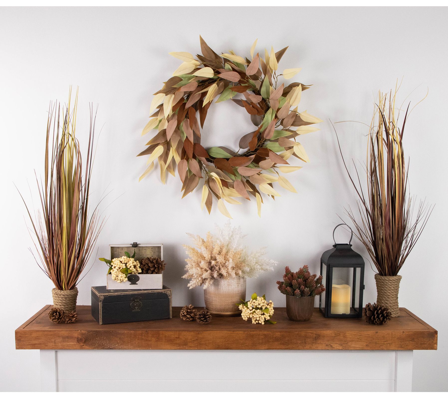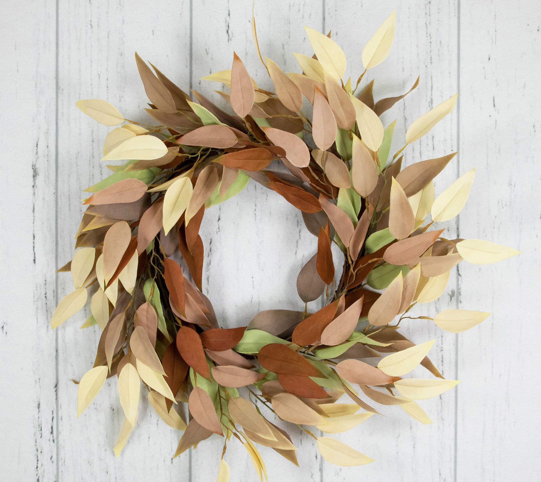 • Includes Harvest Neutral Fall Foliage Leaf Wreath 22" Unlit