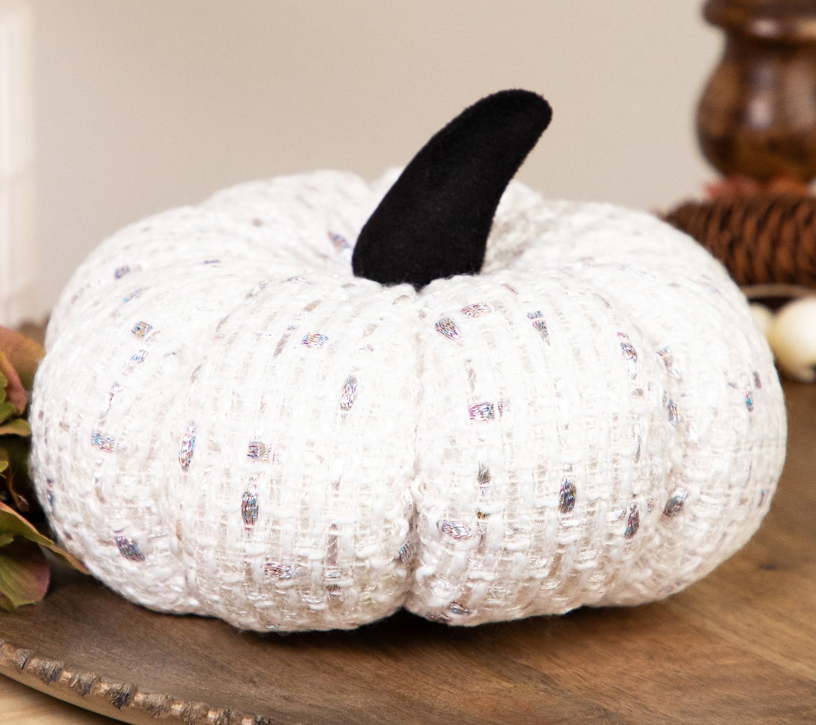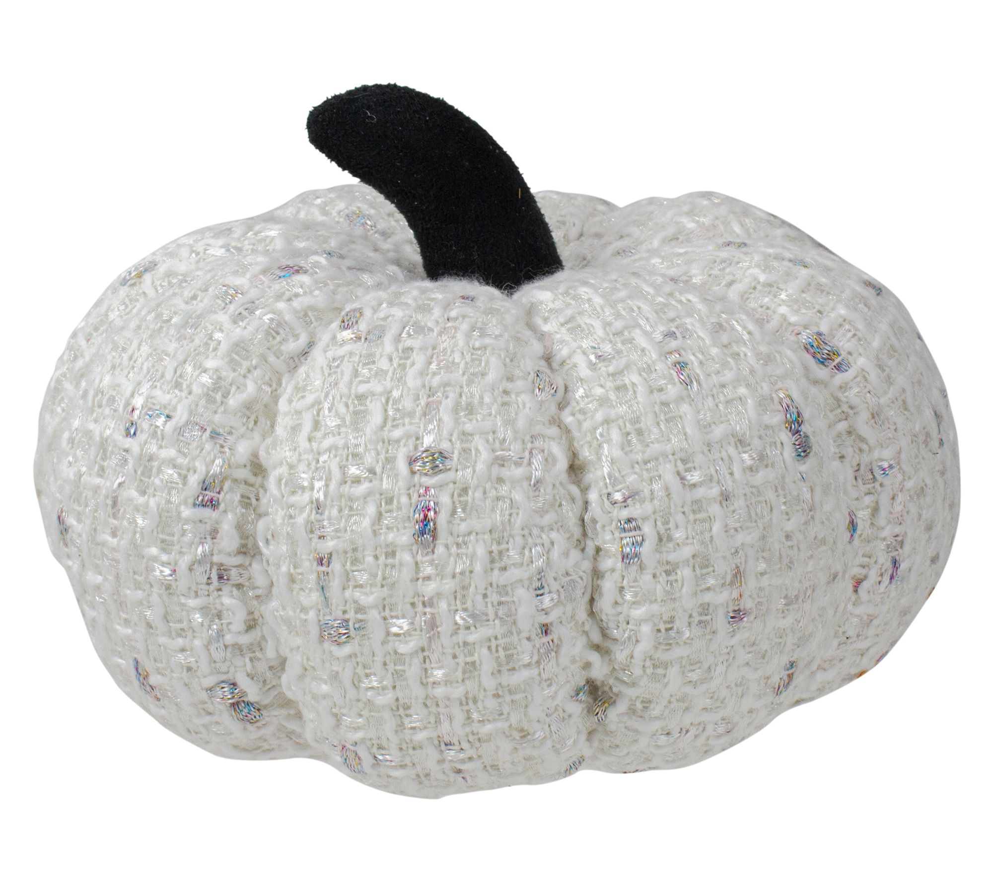 Warmth and whimsy come together in this knitted pumpkin, ready to bring cozy charm to your autumn gatherings. The creamy white yarn, woven with a hint of metallic iridescence, creates a soft, inviting accent that shines on a tabletop, as a centerpiece, or nestled among your harvest decorations. From Northlight.