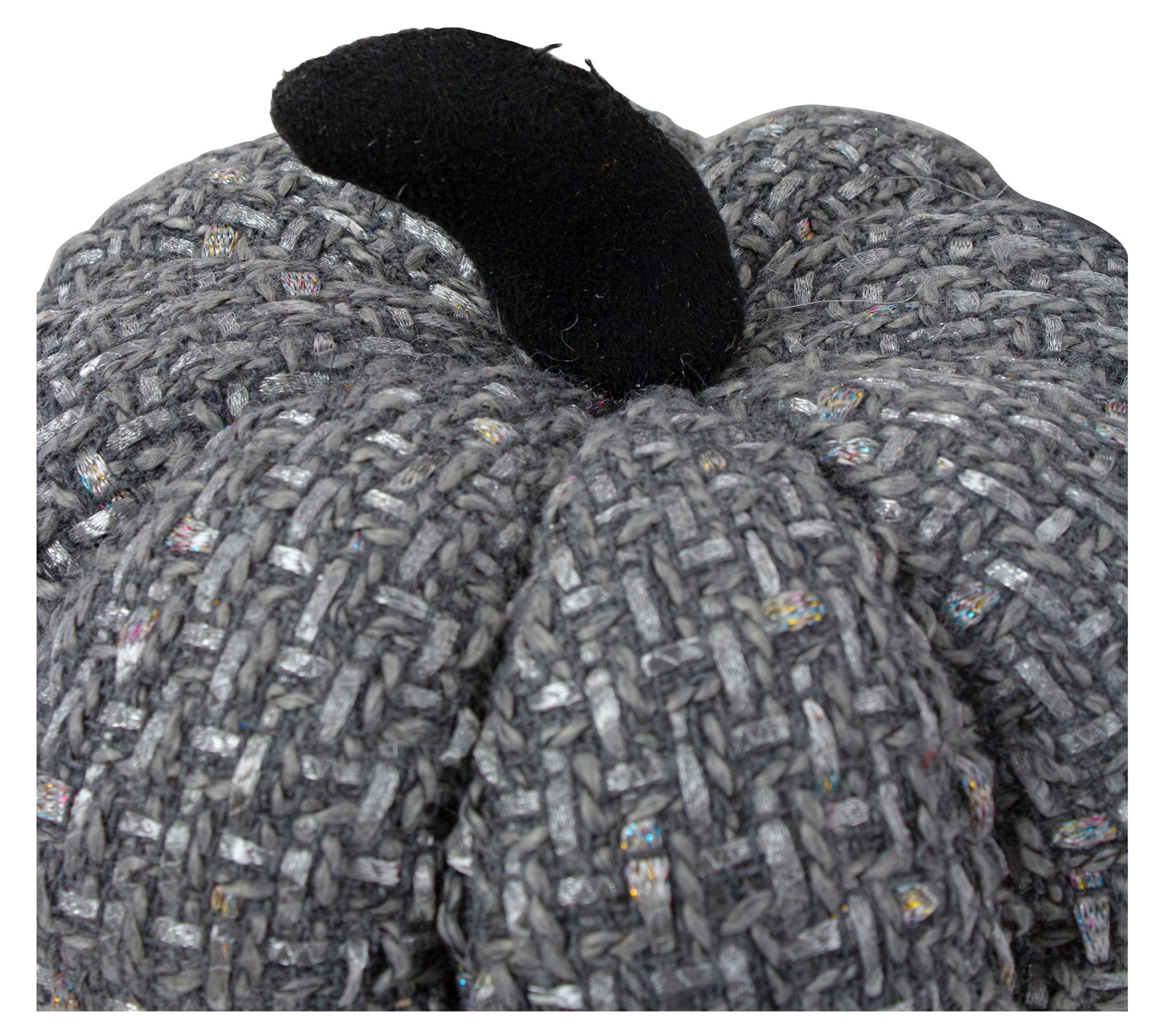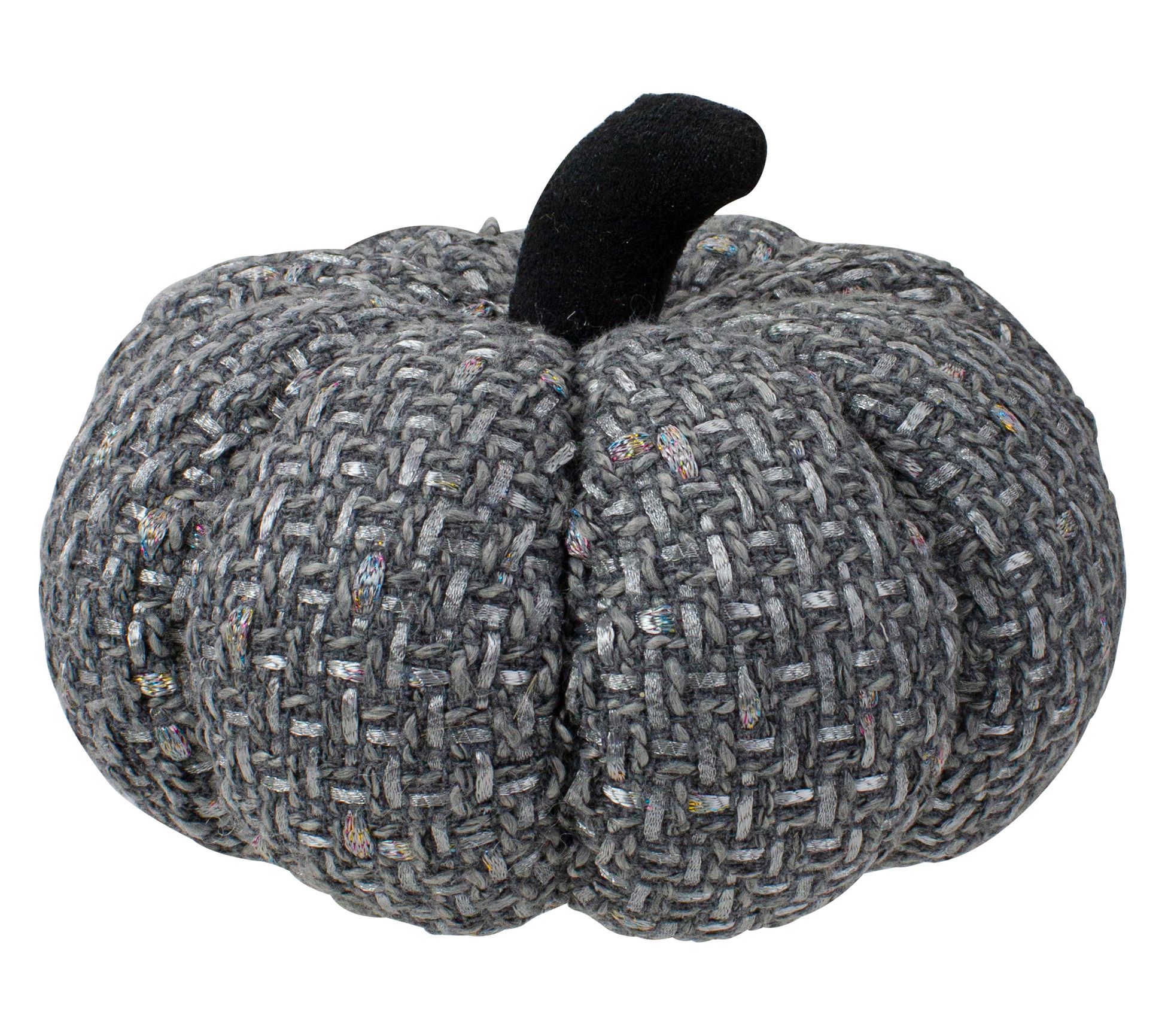 Create a cozy autumn atmosphere with this knitted harvest pumpkin, featuring a plush gray design threaded with shimmering metallic yarn for extra flair. Whether you use it as a standout centerpiece for your Thanksgiving table or as a charming accent on your mantel, this piece transitions beautifully into Halloween displays, too. From Northlight.