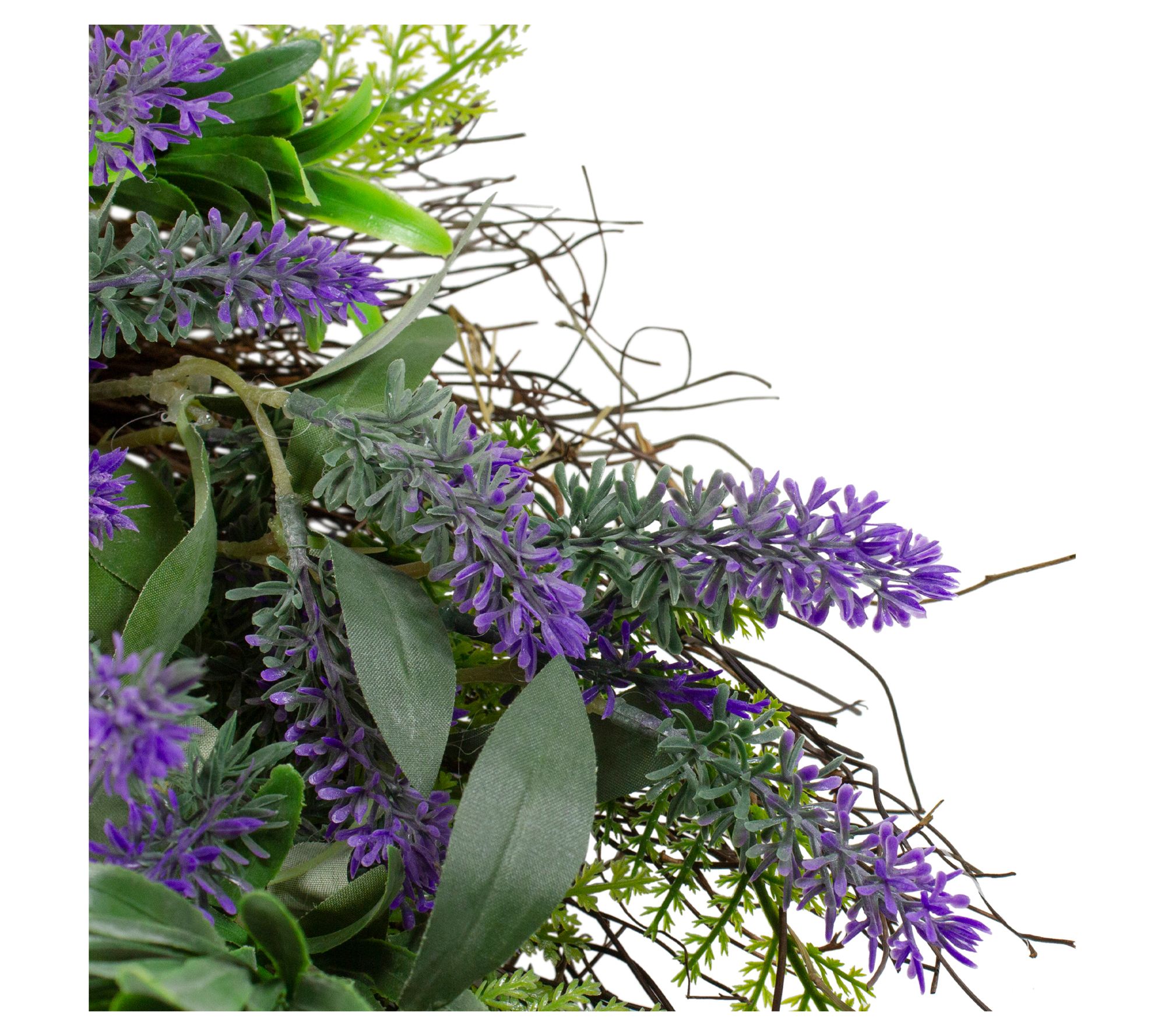 • Lifelike lavender wreath accented with purple lavender flowers and green foliage and twigs