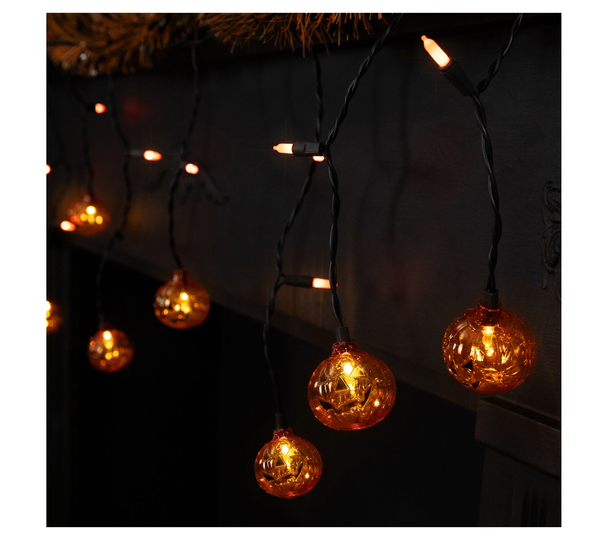 • Glowing orange LED bulbs with transparent pumpkin accents