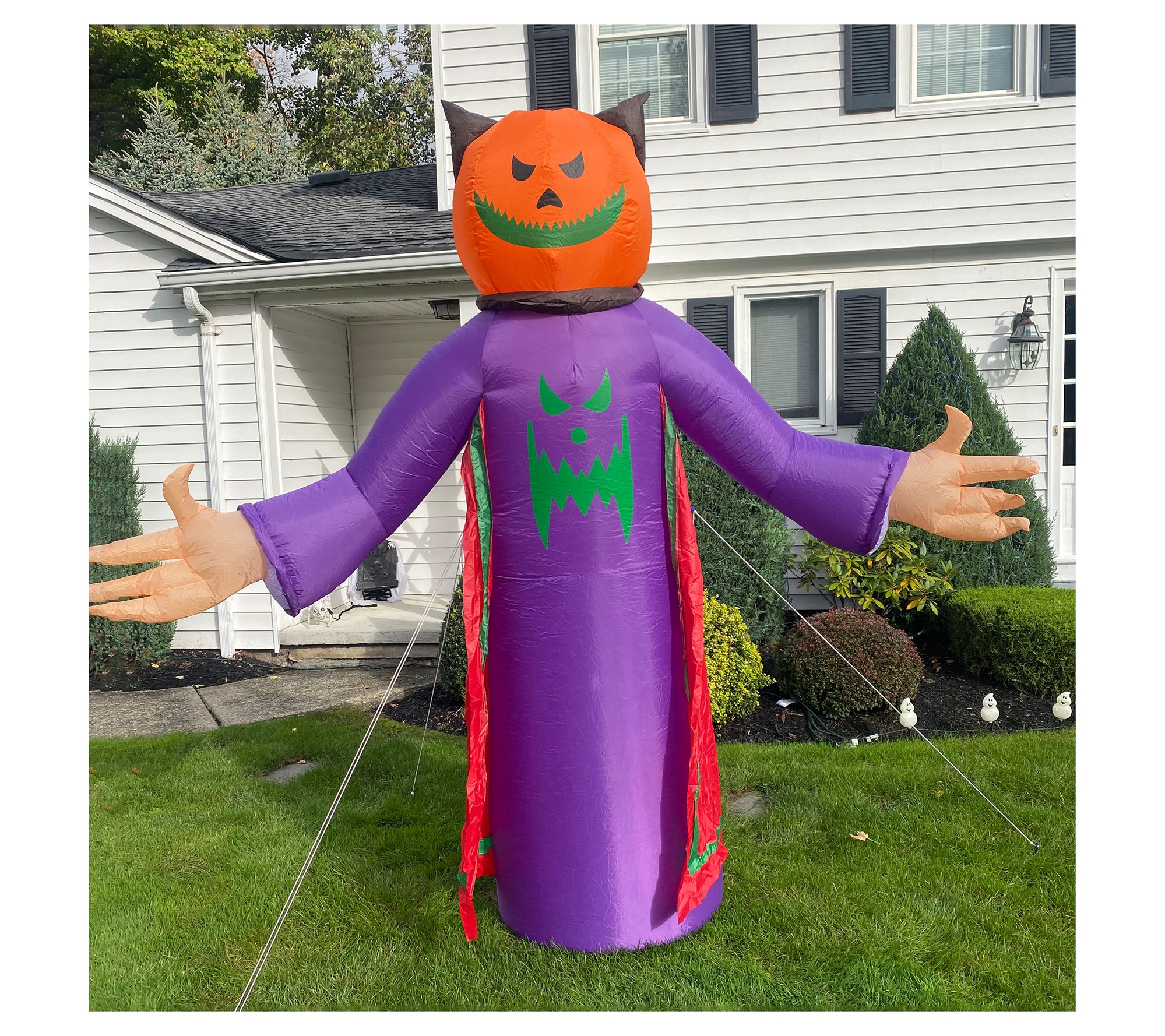 Turn your yard into the talk of the neighborhood when the giant inflatable grim reaper rises, illuminated by warm white LED lights. This spooky Halloween decoration self-inflates in seconds, making setup easy -- just plug it in, stake it down, and enjoy the eerie glow all night long. From Northlight.
