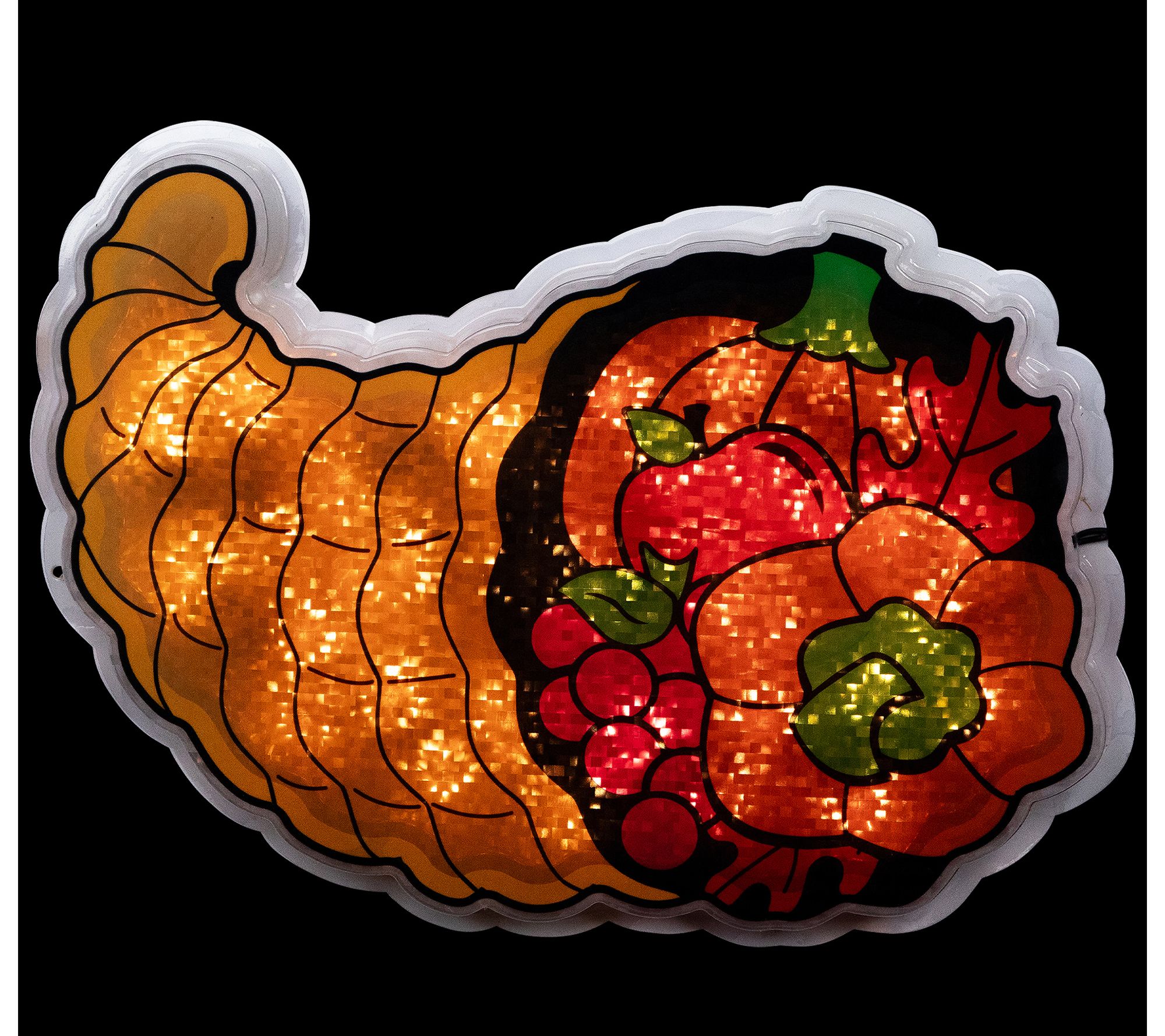 Northlight Lighted Cornucopia Thanksgiving Window Silhouette