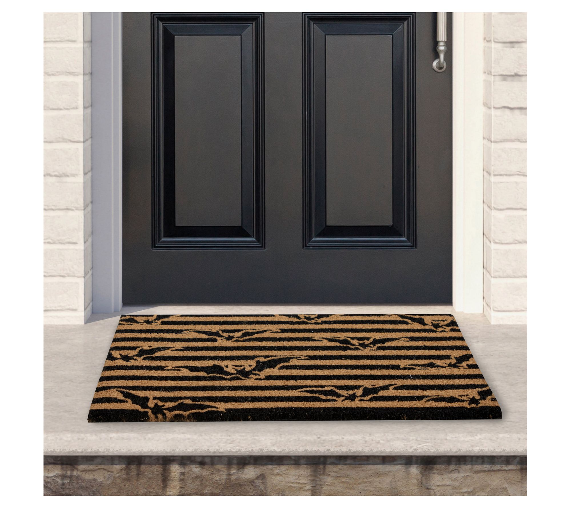 Welcome guests -- and ghouls -- with the Halloween doormat, where charming flying bats and classic stripes set the tone for a festive entrance. Thick, durable coir fibers easily capture dirt and moisture, keeping your entryway cleaner during the busy season of trick-or-treating and entertaining. From Northlight.