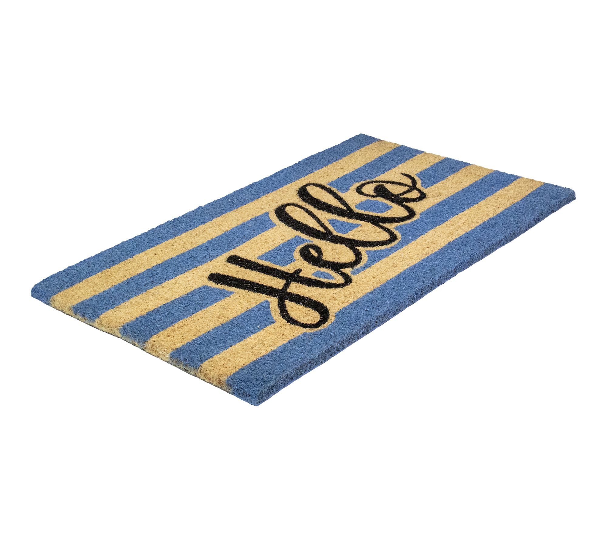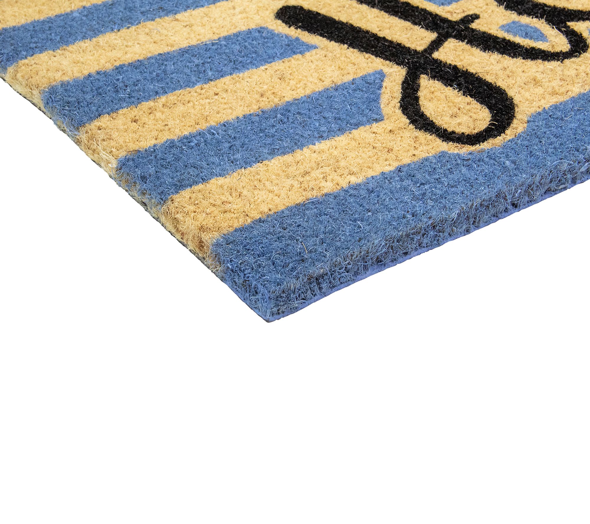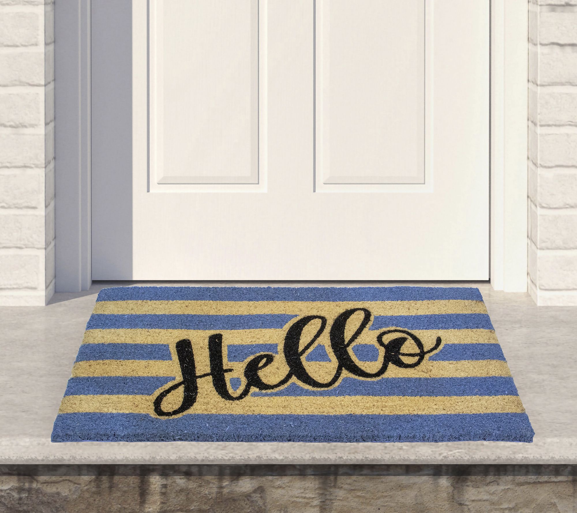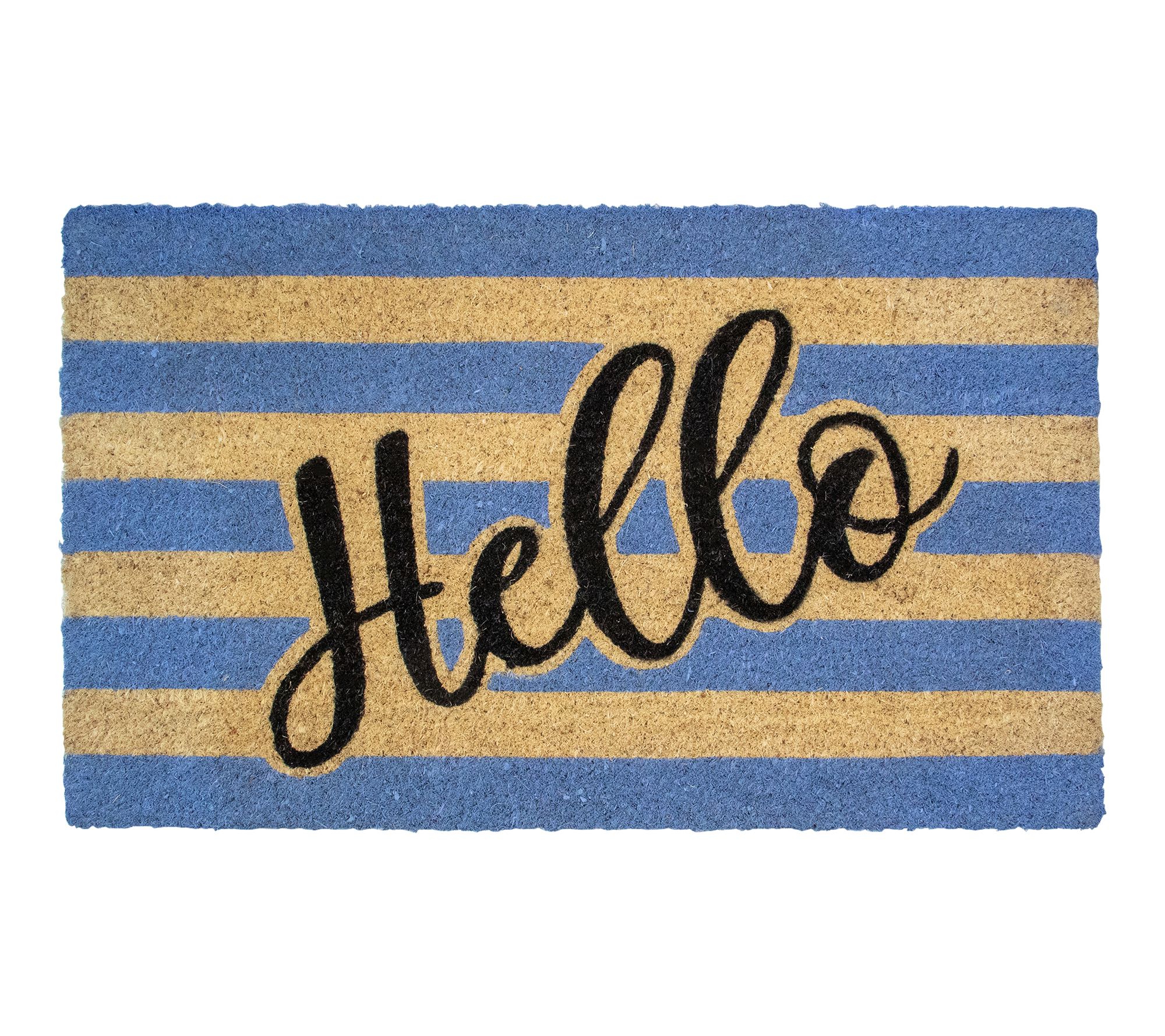 Welcome guests with a pop of personality and a friendly greeting underfoot. This outdoor doormat features thick coir fibers and cheery stripes, adding vibrant style to your entryway while helping to keep dirt and debris outside. Heavy-duty construction and a skid-resistant backing ensure durability through every season. From Northlight.
