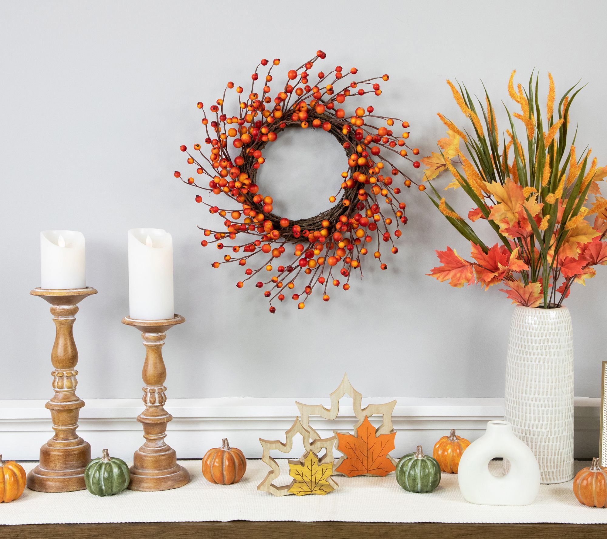 Add a festive touch to your fall decor with this harvest wreath, filled with berries and twigs in bright, vivid colors. From Northlight.