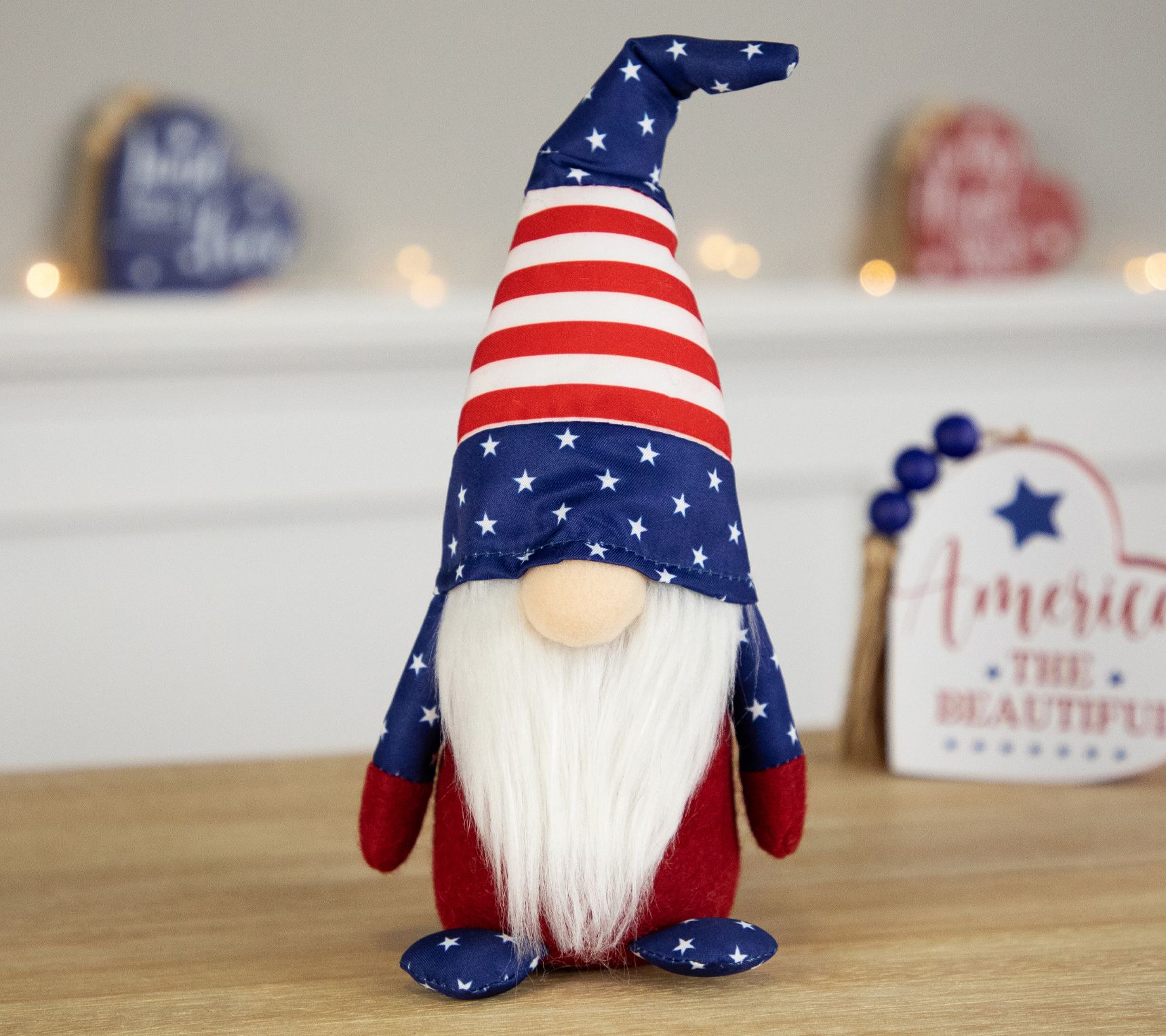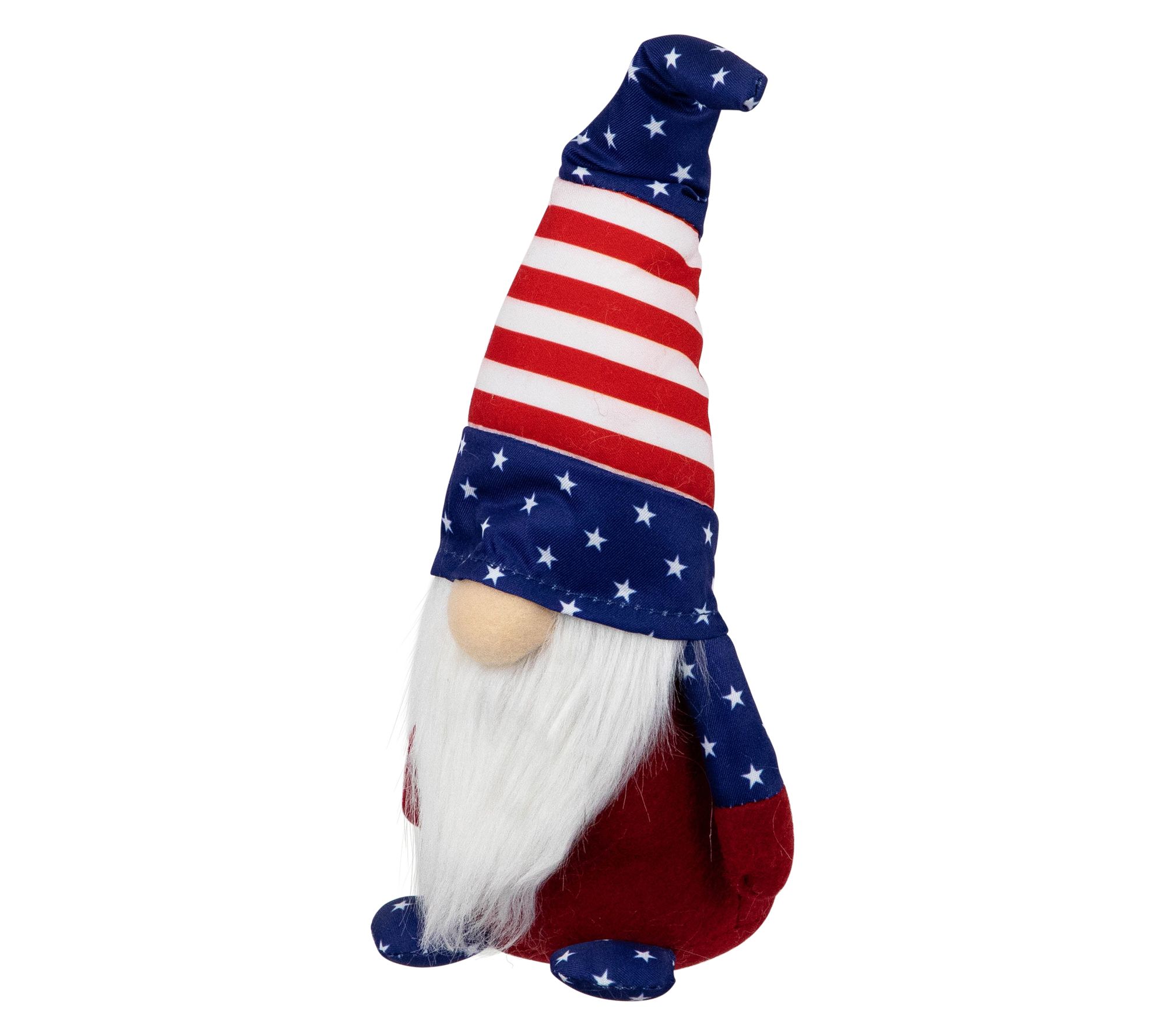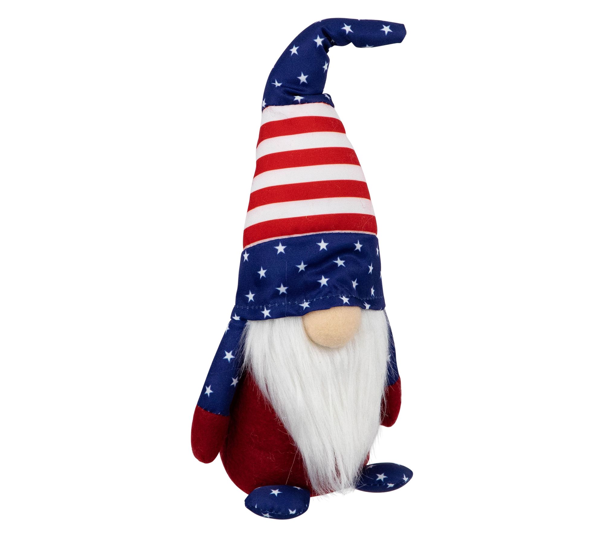 Add a festive touch to your home with this charming patriotic gnome. Decked out in red and white stripes with stars, this whimsical figure is a fun way to show your love for the USA. Whether gracing your mantel or posing on a shelf, his bendable hat and steady base make decorating a snap. Perfect for holidays like Independence Day and Memorial Day, he's sure to be a conversation starter. From Northlight.