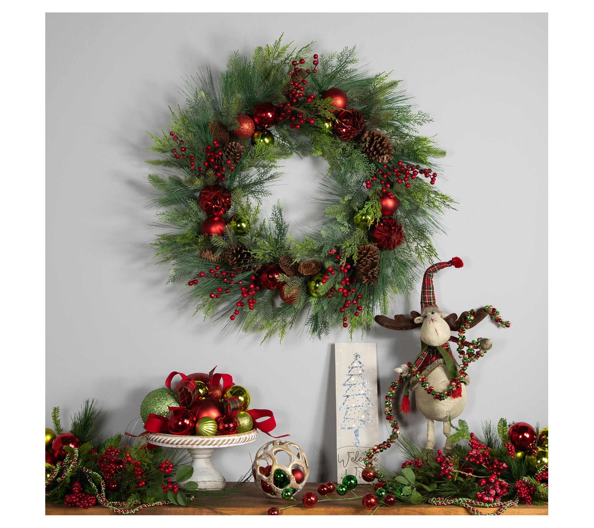 Northlight Pinecones and Ornaments Christmas Wrath 36"