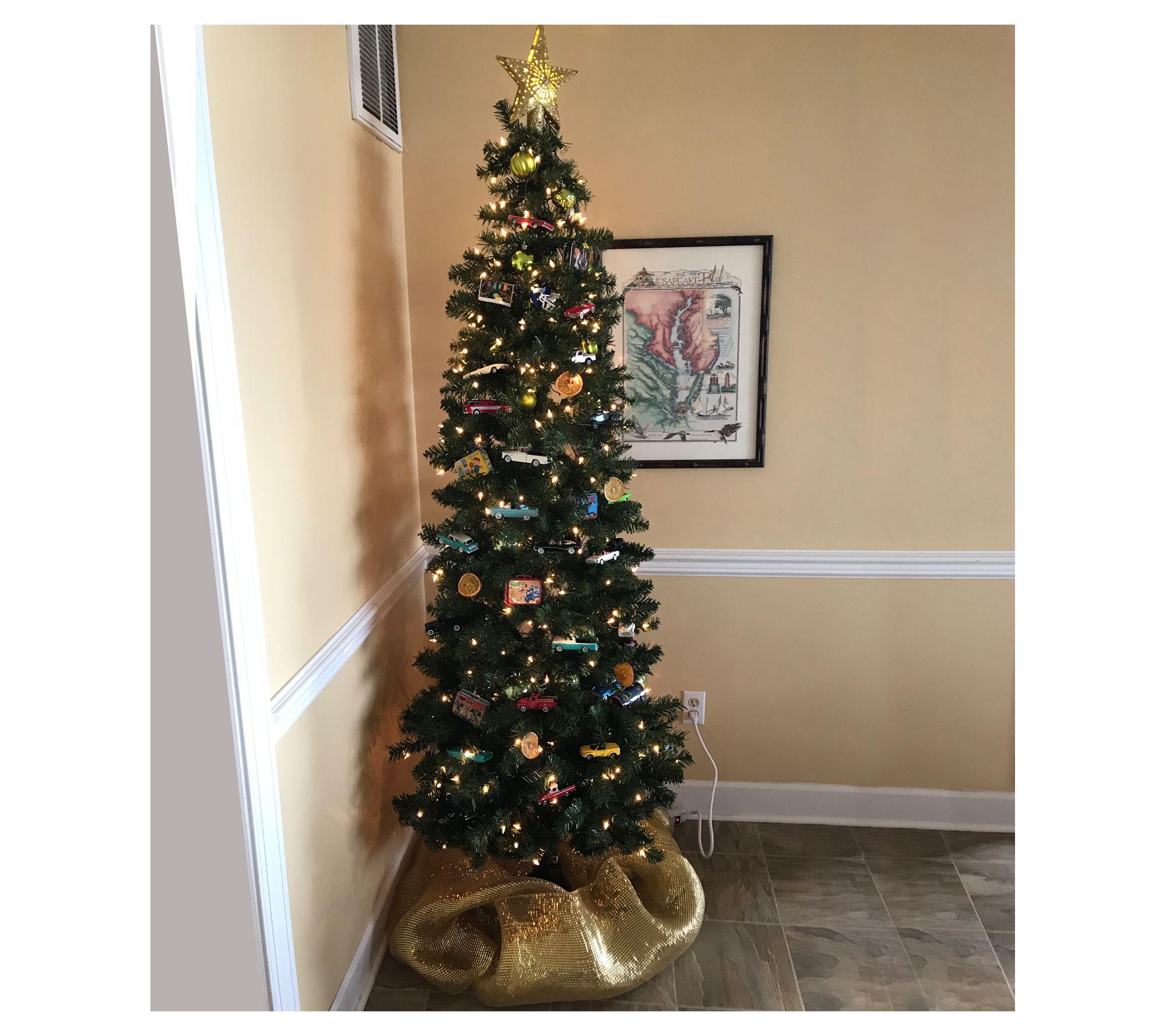 The perfect choice for apartments or other tight spaces, this slim profile Christmas tree features 350 pre-lit lights, and stands at a grand 7-1/2'H. From Northlight.