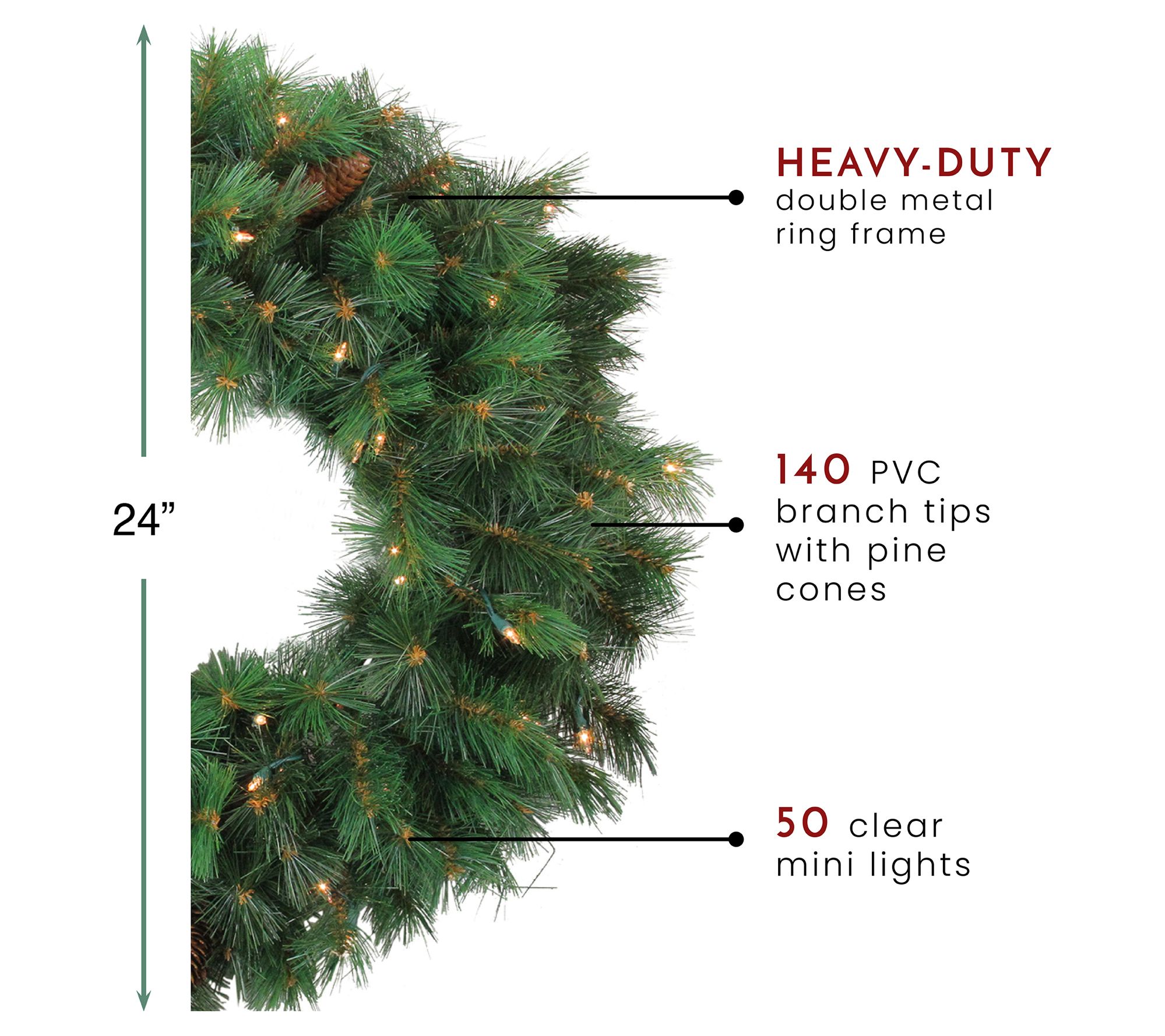 • Includes lifelike pine wreath, replacement bulbs, and spare fuses