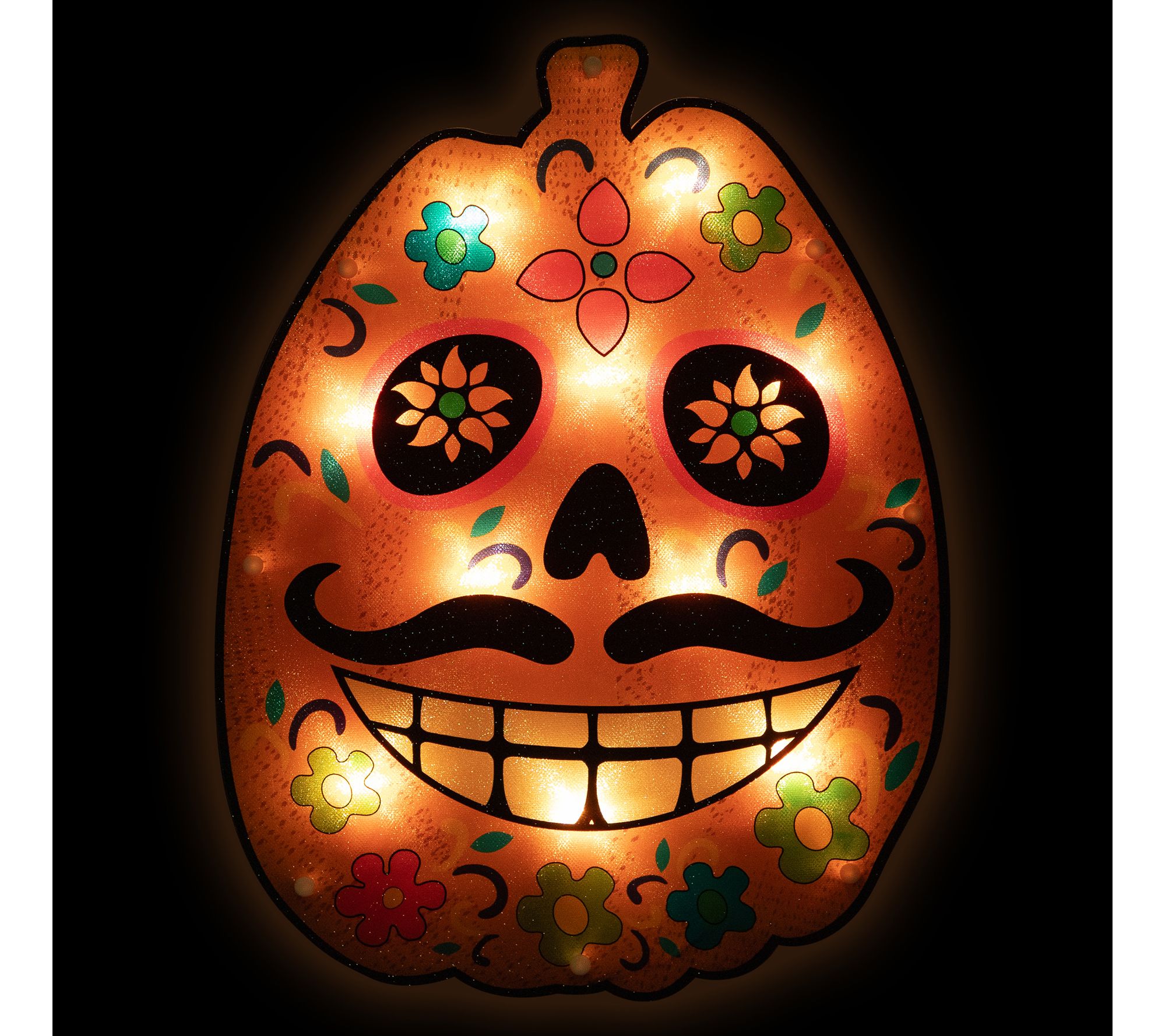 Bring festive flair to your space with this prelit sugar skull window silhouette -- just plug it in and enjoy a cheerful glow that sets the mood for your seasonal gatherings. Lined with clear mini bulbs, it adds bright, eye-catching charm to any window and comes ready to use with mounting accessories. From Northlight.