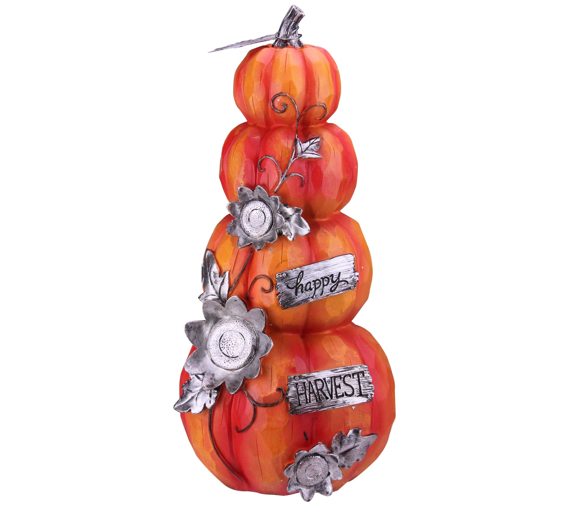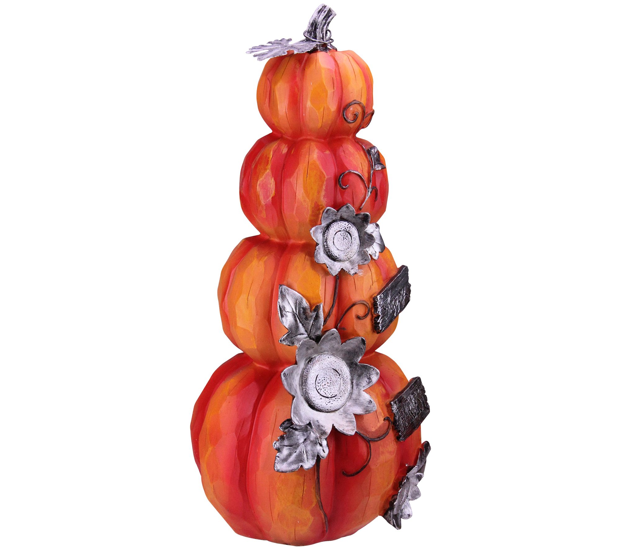 • Four stacked pumpkins, silver flower/leaf/vine embellishment