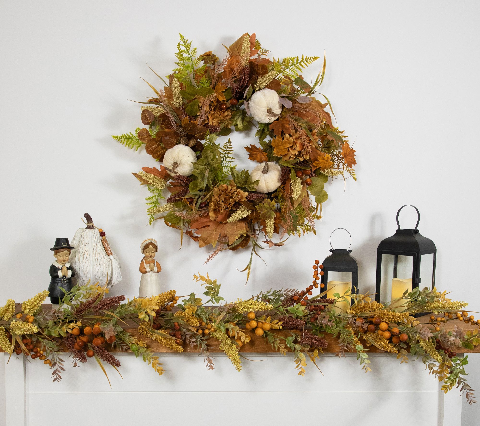 Northlight Pumpkins & Leaves Fall Harvest Wreath 26" Unlit