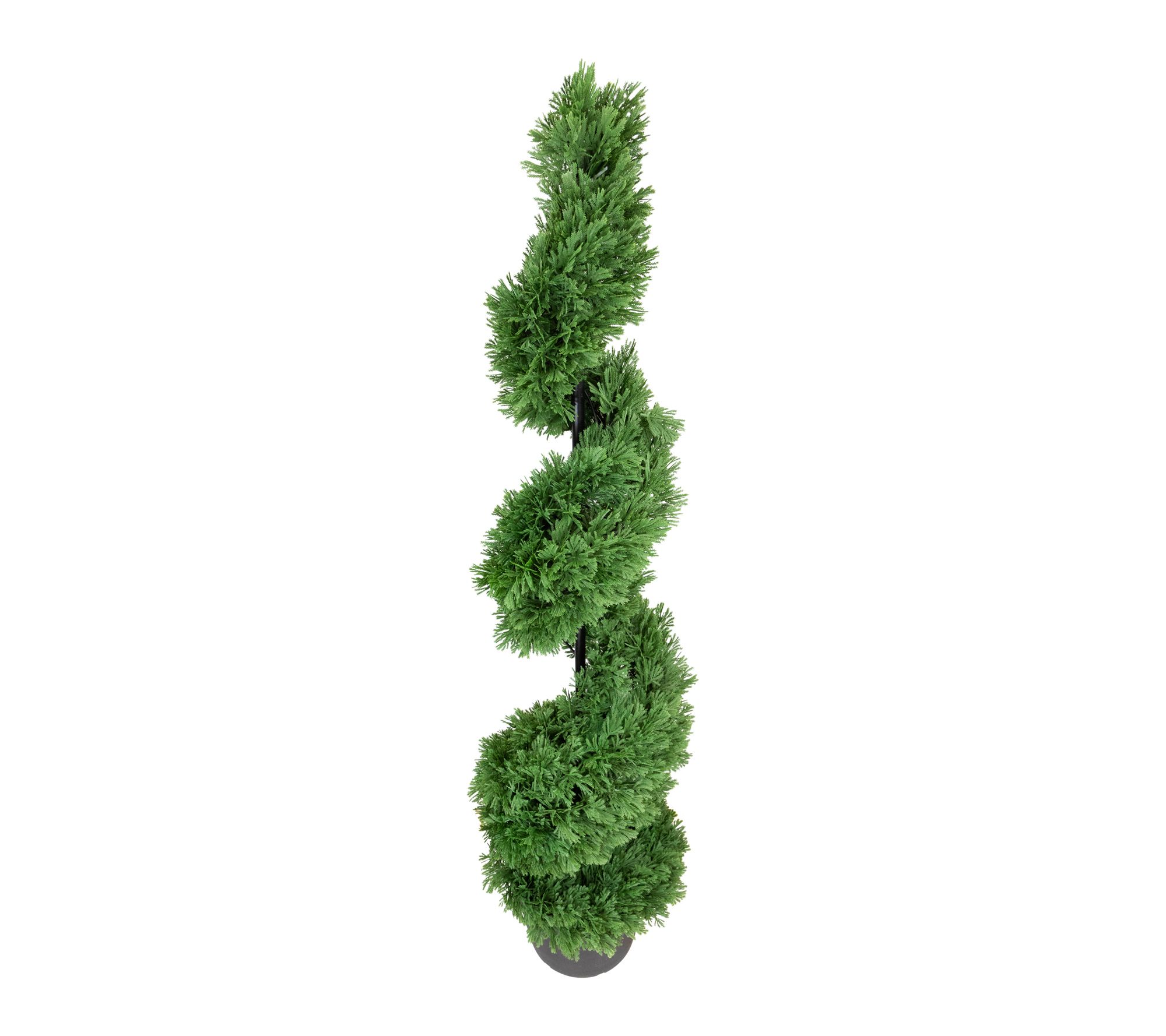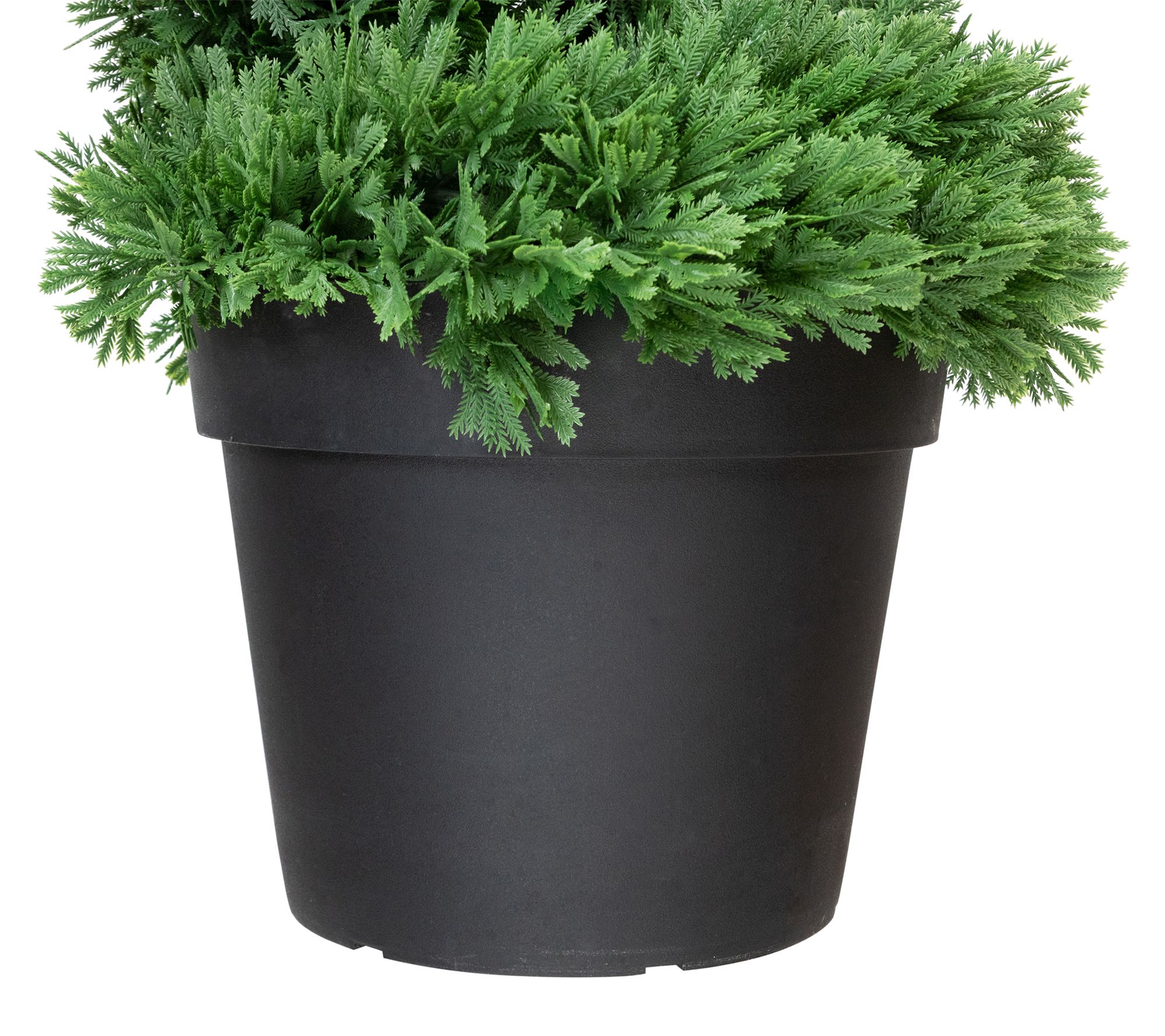 • Real Touch faux cedar spiral topiary tree in weighted black pot with faux moss soil