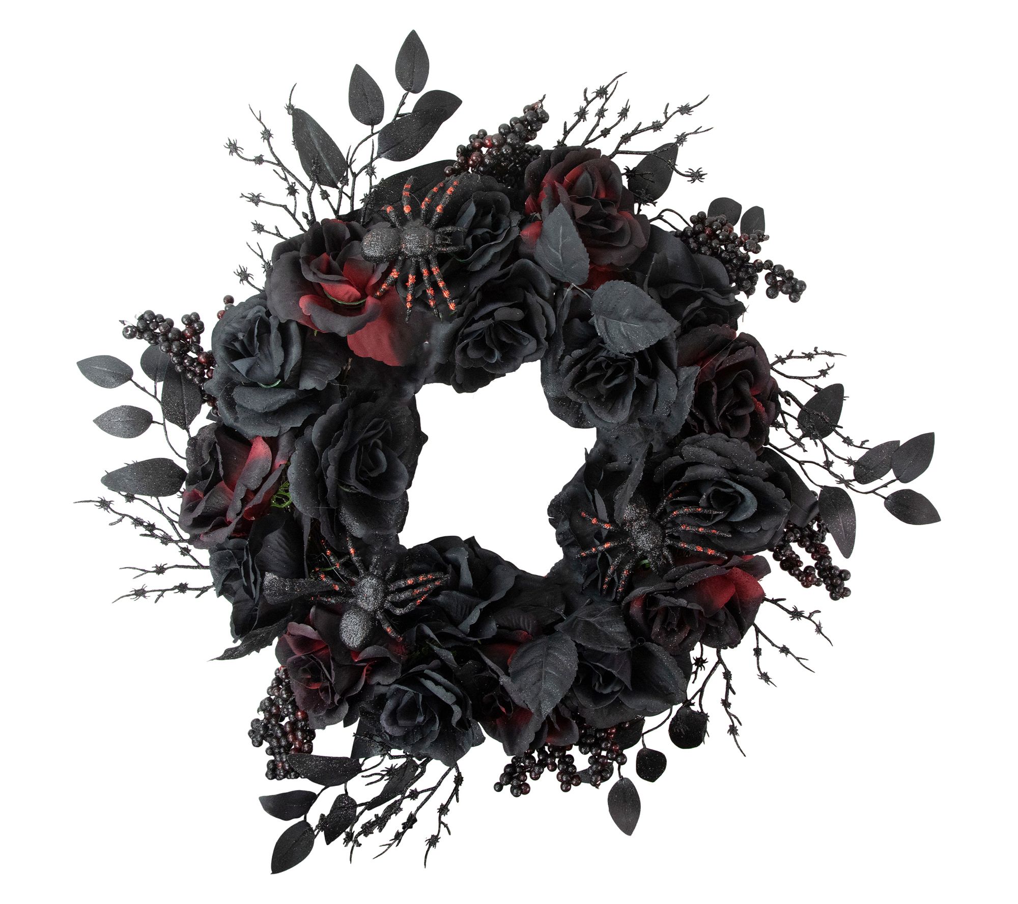 Northlight Roses & Foliage Halloween Spider Wreath 24" Unlit