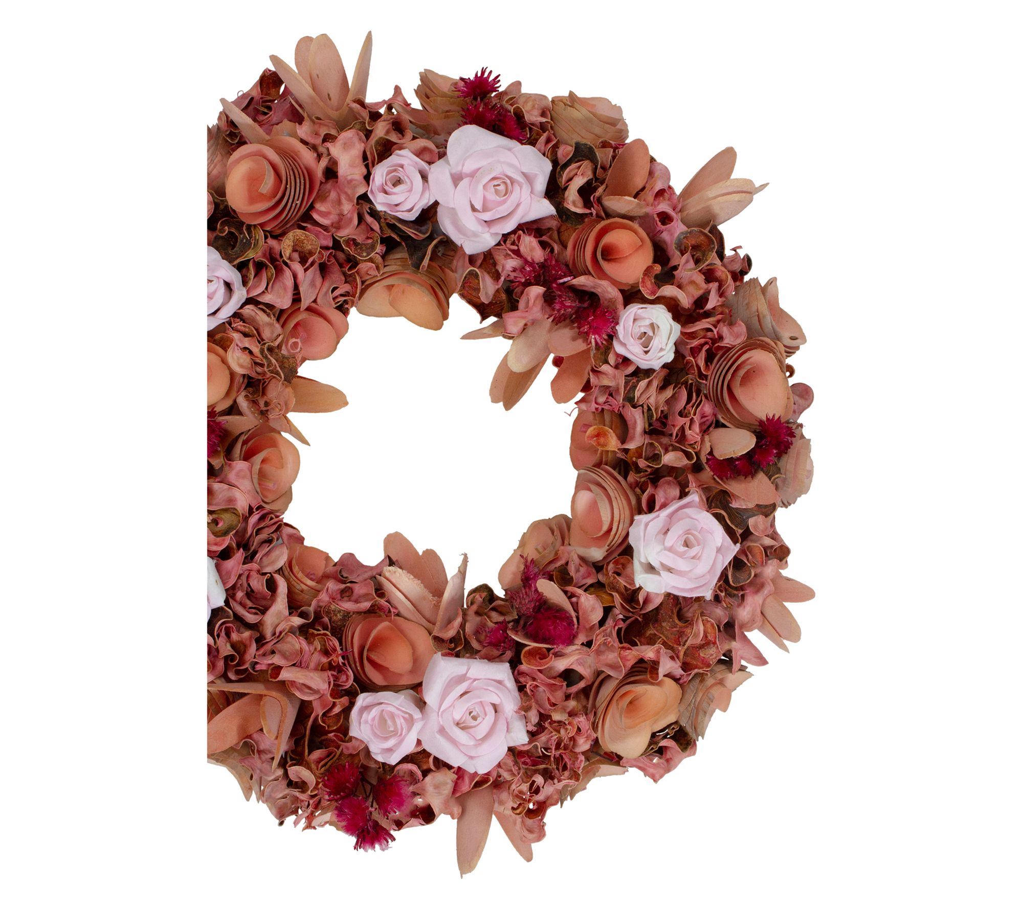 Welcome spring with this charming wreath, brimming with shades of pink flowers. Perfect for a wall, door, or as a flat centerpiece on your table, this floral wreath effortlessly brings a touch of new season beauty to your decor. From Northlight.