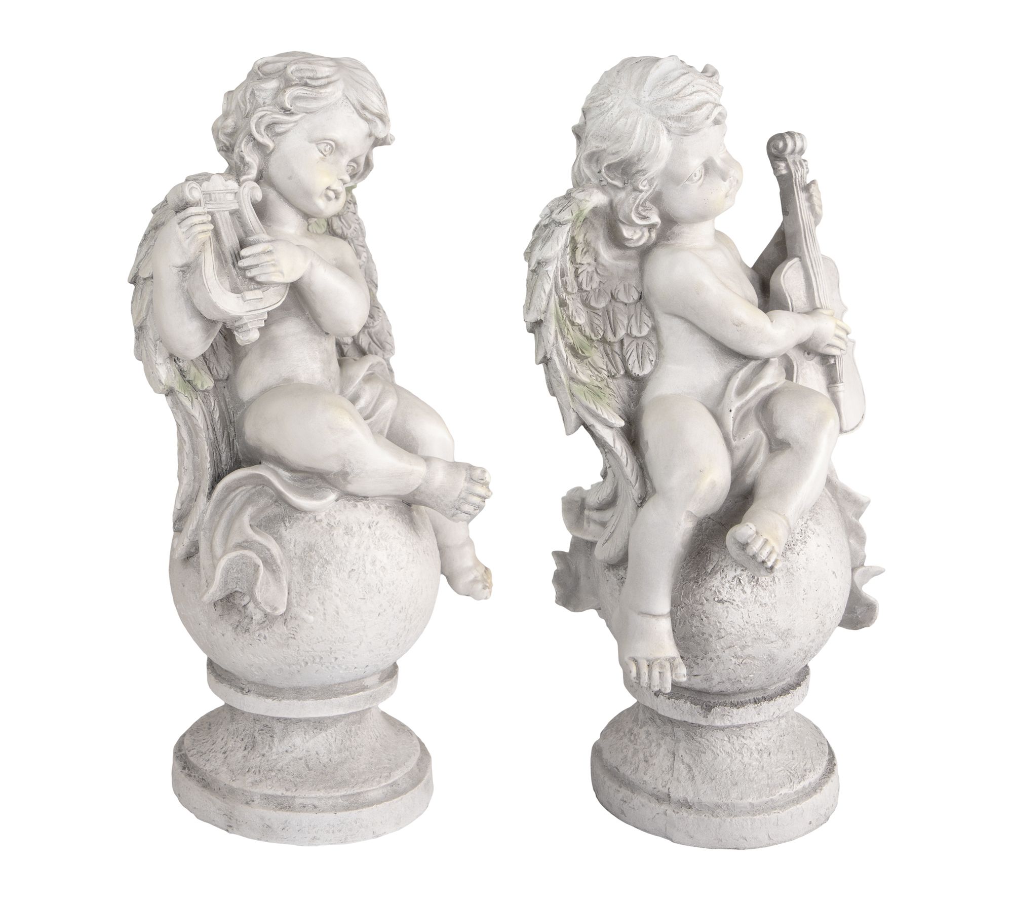 • Measures harp cherub: 15.25"H x 7.25"W x 6.5"D; violin cherub: 14.75"H x 7.25"W x 7"D