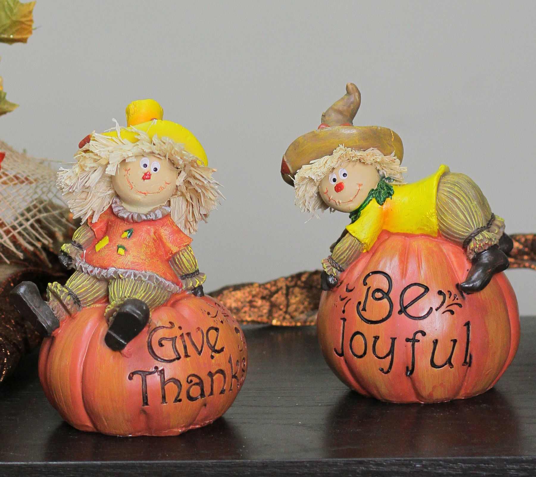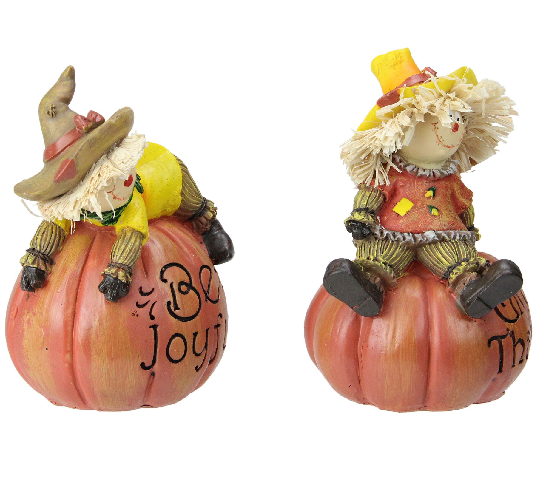 Northlight Set of 2 Scarecrow on a Pumpkin Thanksgiving Figur