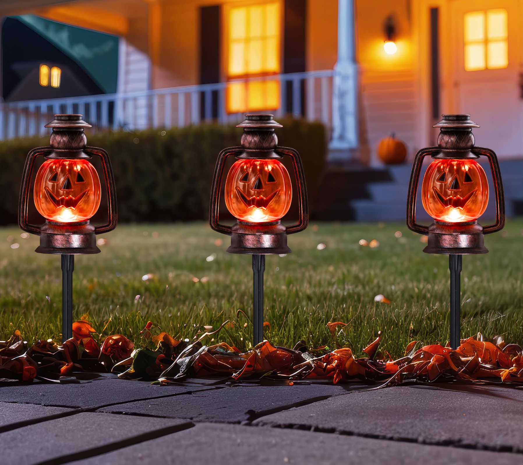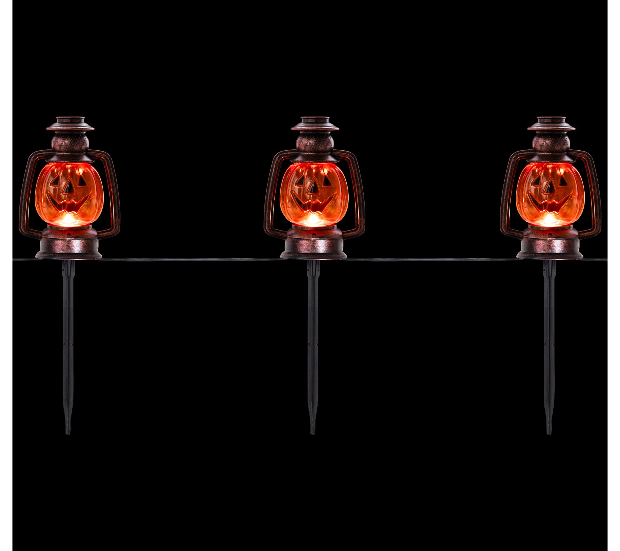 • Includes set of three jack-o'-lantern pathway markers, three bulbs, three black ground stakes