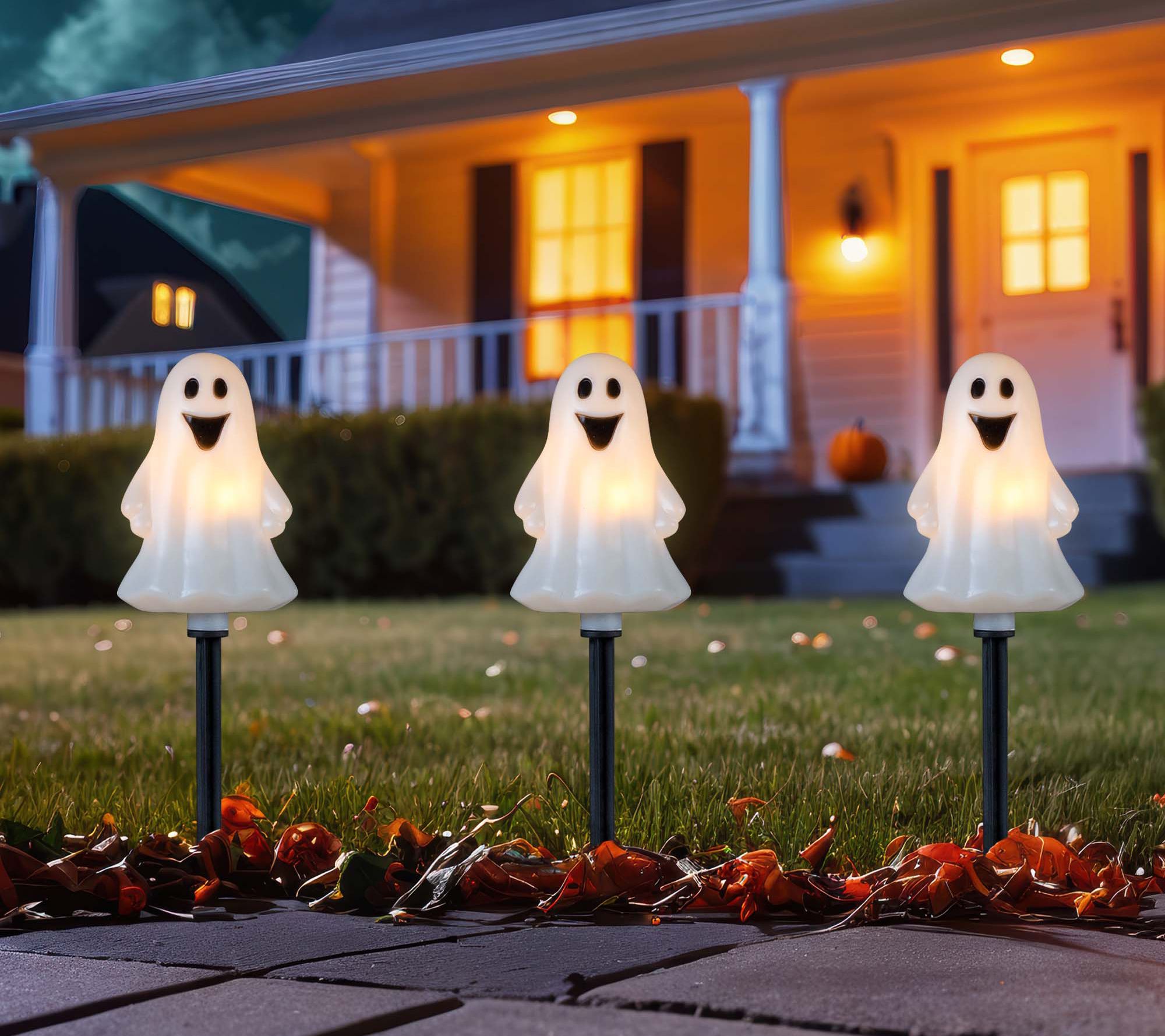 Lead trick-or-treaters right to your front door with these spooky ghost-shaped pathway markers! From Northlight.